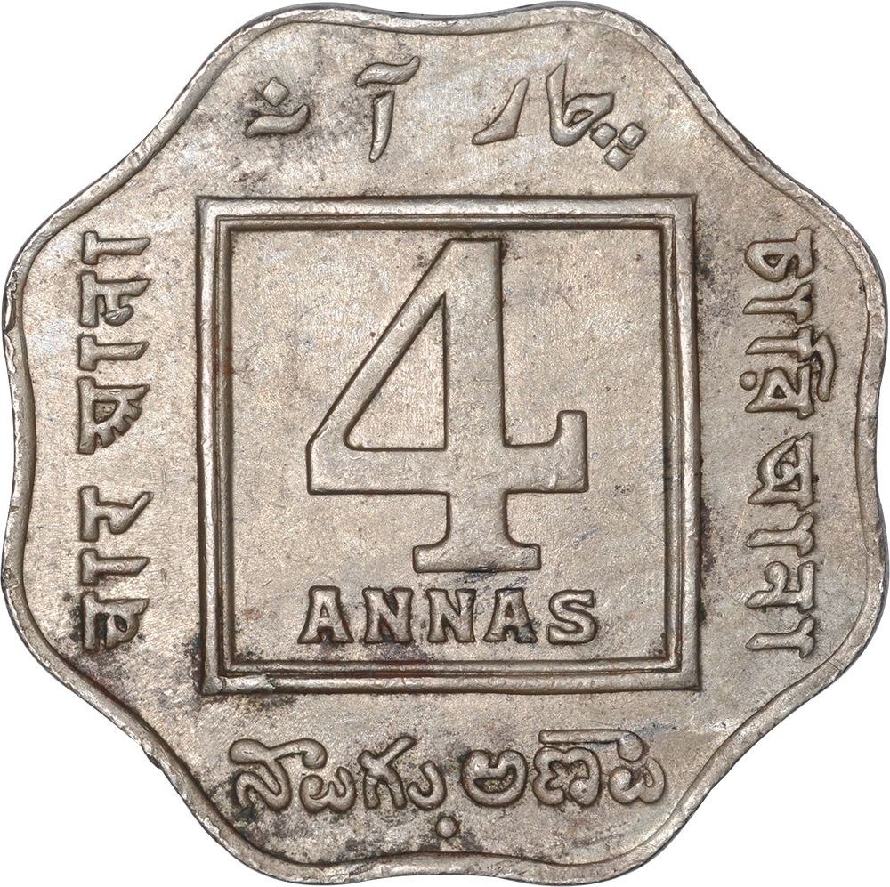1920,King George V,Cupro Nickel 4 Annas,Bombay Mint,Bead, (PR # 878),about UNC, Scarce.
