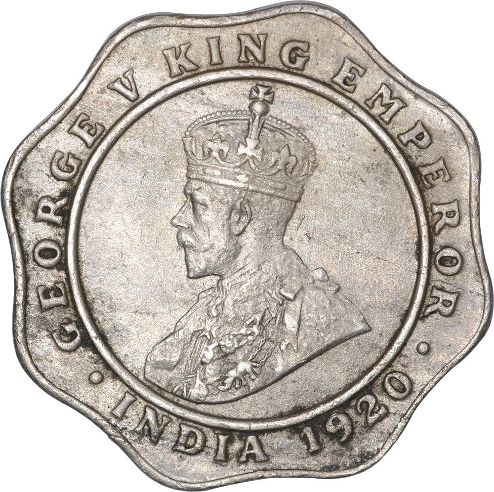 Cupro Nickel Four Annas Coin of King George V of Bombay Mint of 1920.