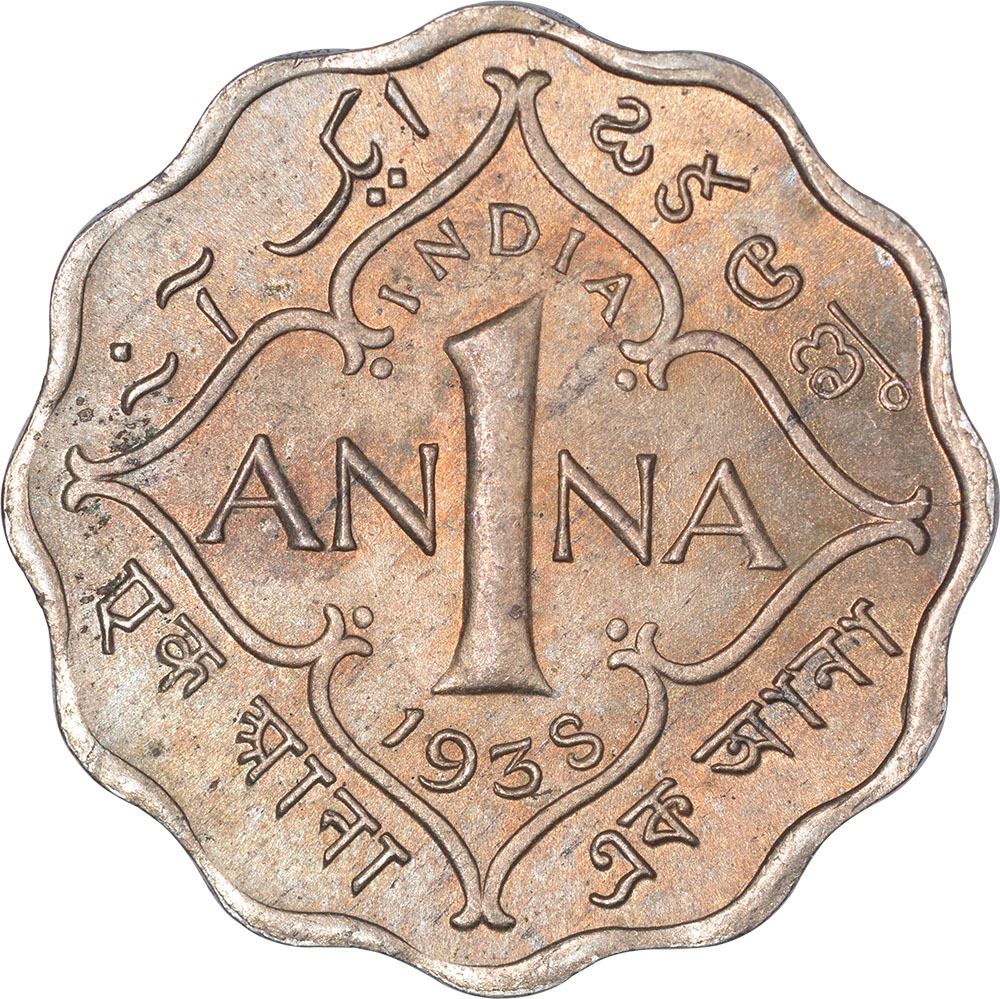 1938, King George VI, Cupro Nickel 1 Anna, Calcutta Mint, (PR # 959), tonedUNC.