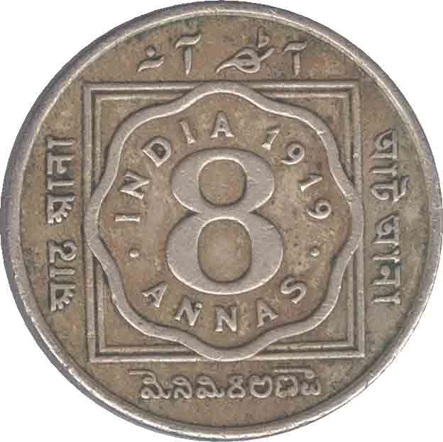 Cupro Nickle Eight Annas of King George V of Calcutta mint of 1919.