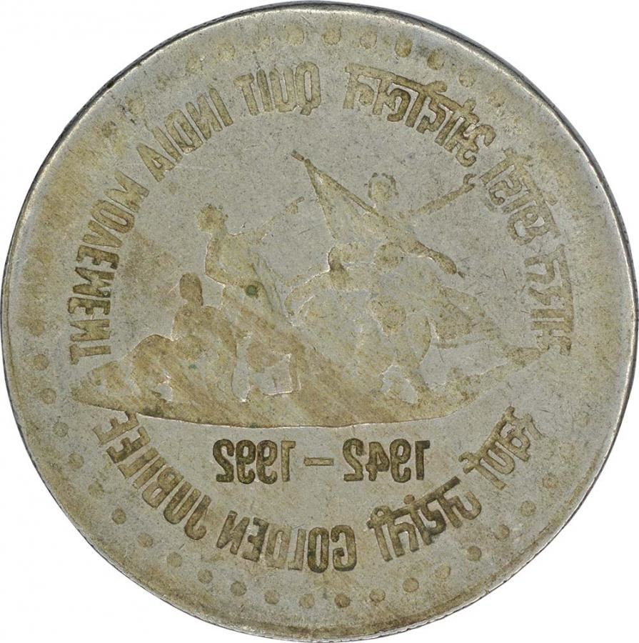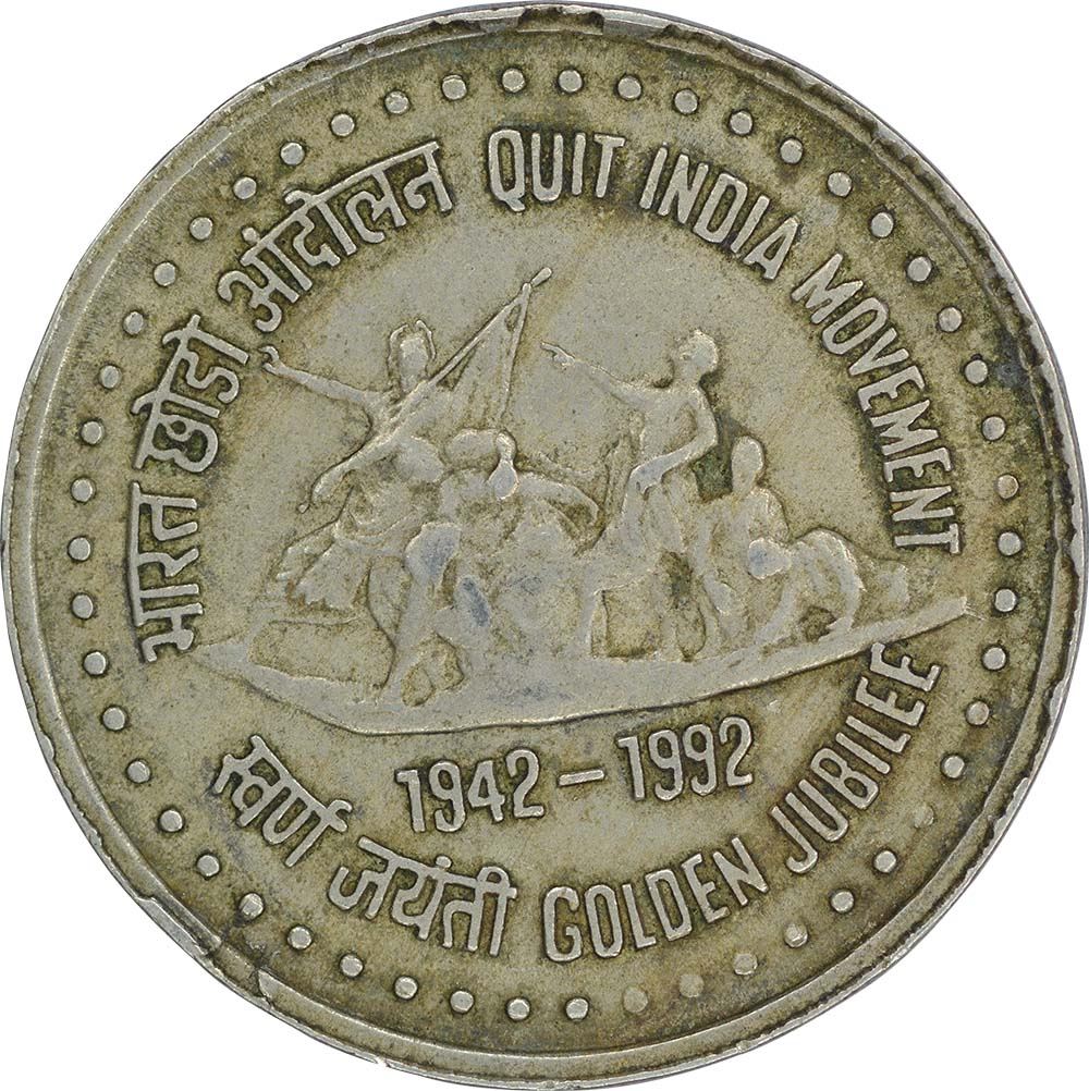 Republic India, Cupro-Nickle, 1 Rupee, 1992, Quit India Movement (1942-1992),Complete and clear obverse lakhi brockage with deep and full impressions ofreverse atobverse, 6.10g, 26.30mm, about very fine, Very Rare.
