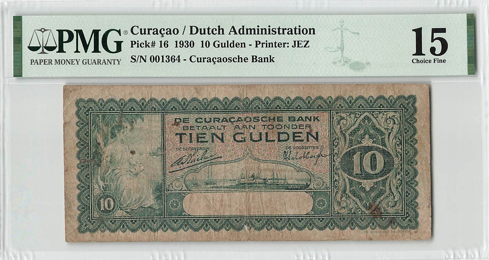 Curacao 10 Gulden 1930 Pick 16 PMG Choice Fine 15