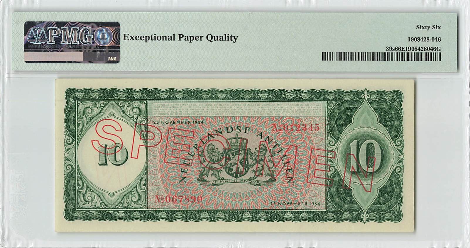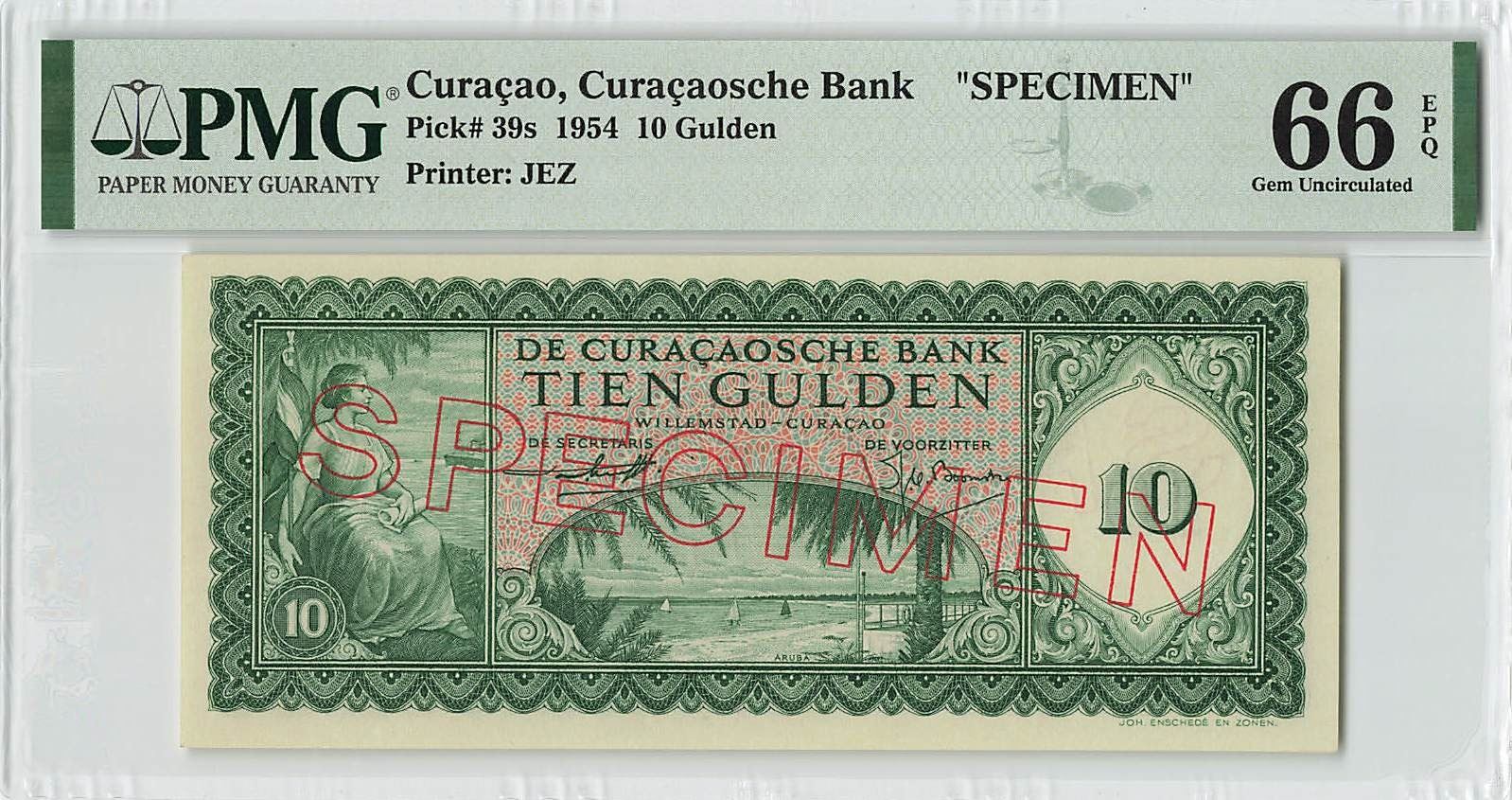 Curacao 10 Gulden 1954 Specimen Pick 39s PMG Gem Uncirculated 66 EPQ