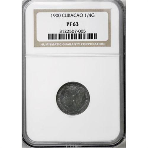 <B>Netherlands Colonial Proof 1/4 Gulden 1900,</B></I> KM35, Proof 63 NGC. Well struck and superbly toned with the appearance of a higher graded coin. Very scarce with a mintage of only 40 pieces.<BR><BR><b>Shipping:</b> Coins & Currency (<a target="_blank" href="http://www.heritageauctions.com/common/shipping.php">view shipping information</a>)