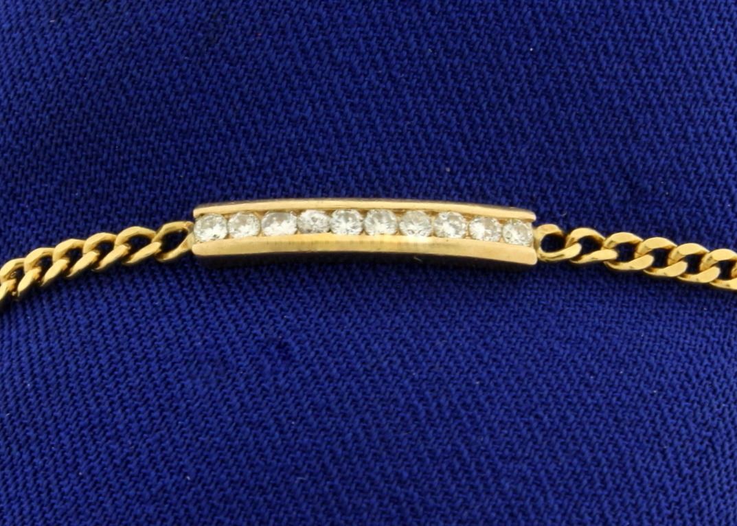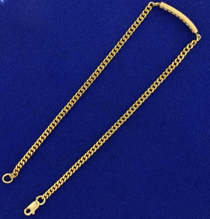 In 14k yellow gold. 8" long with lobster clasp. Contains ten .02ct high quality diamonds, VS clarity/H color. 4.4g.