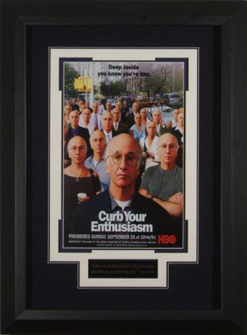 Curb Your Enthusiasm is an American comedy television series produced and broadcast by HBO, which premiered on October 15, 2000. It aired 80 episodes over eight seasons, the last of which aired in 2011. The series was created by Seinfeld co-creator Larry David, who stars as a fictionalized version of himself. The series follows Larry in his life as a semi-retired television writer and producer in Los Angeles and later New York City. After season eight finished in 2011, the series went on an indefinite hiatus. In June 2016, after a five-year absence, it was announced the series would return for a ninth season.This is an signed Publicity Masterprint 11x17 inch movie poster with museum Quality Custom Rope Framing as shown to an overall size of 22x30. Larry Davis has signed this poster. The perfect addition to complement any Home Theater Collection. Witnessed, Examined, and Certified Authentic (Lifetime) by Millionaire Gallery, Inc.