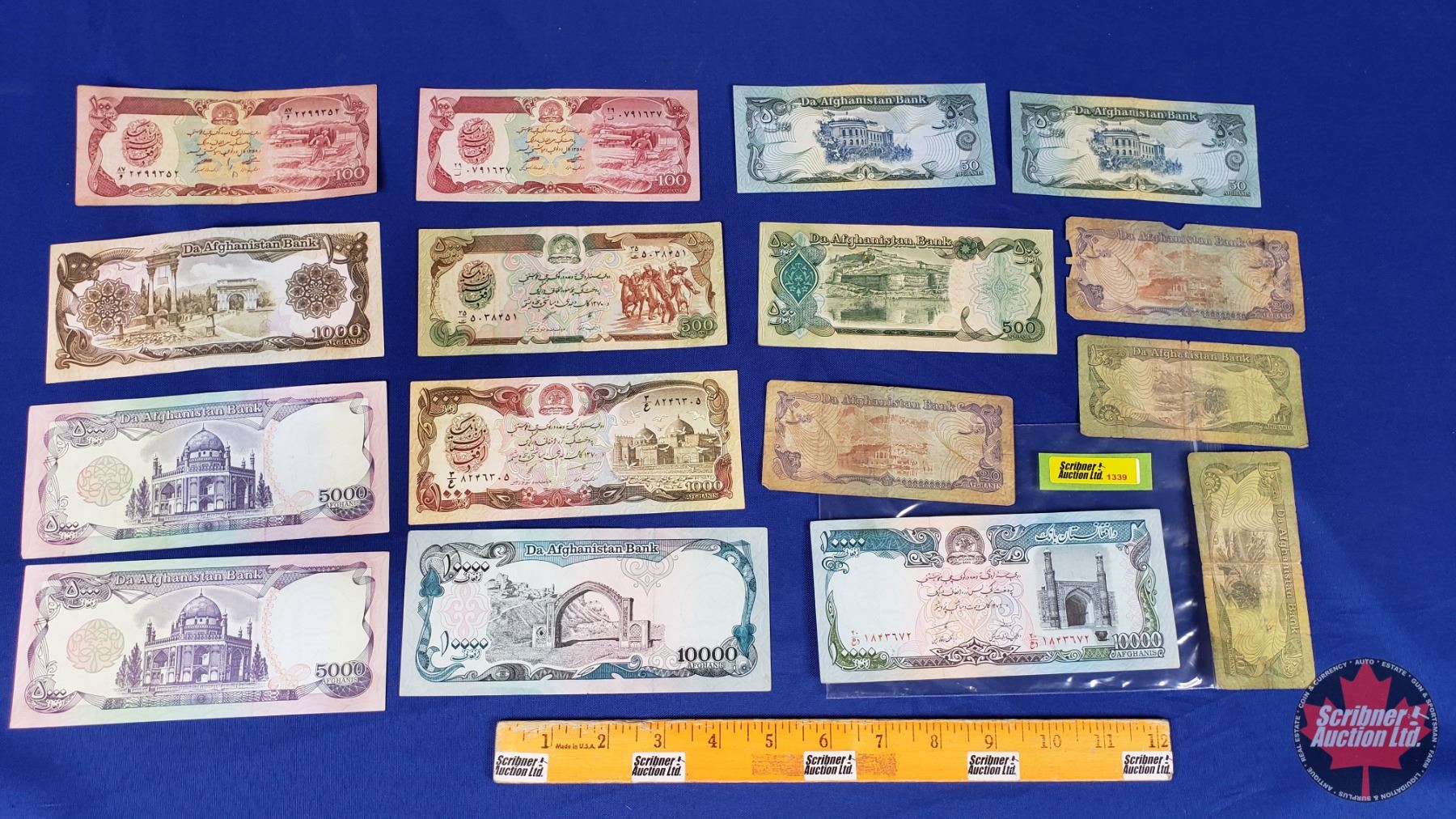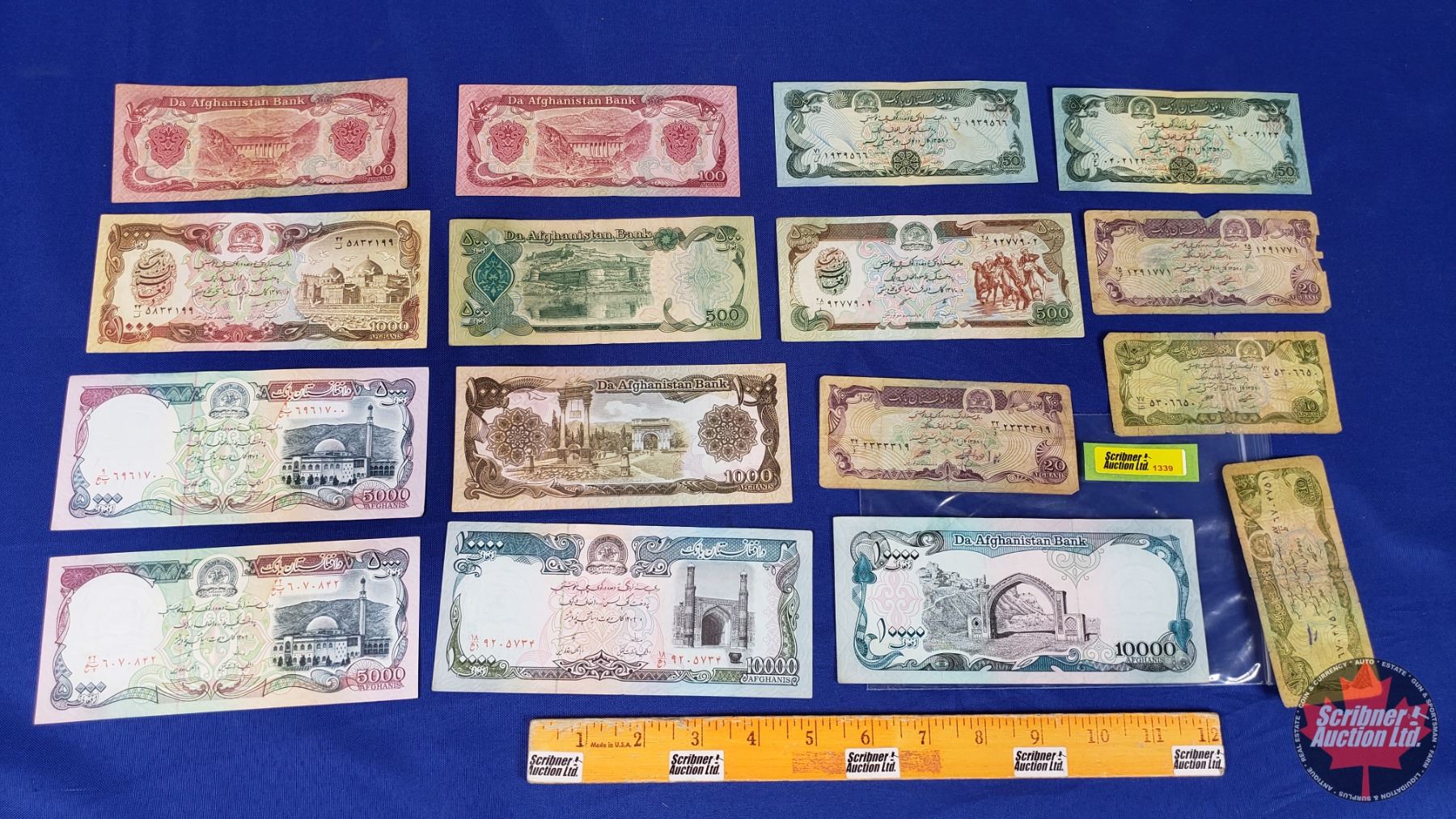 Currency: Afghan "Afghanis" Bills Collection (16) $100 - $10,000 (two Sets) ($33,360 Afghanis Total)