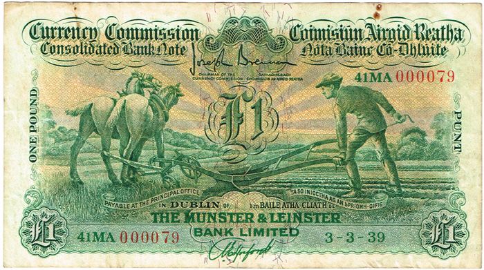 41 MA 000079. Signed Brennan and Hosford. About very fine, foxed pinholes. Also with this lot some later including Five Pounds 26-5-74 and 12-7-91, etc., fair to very fine. (7)