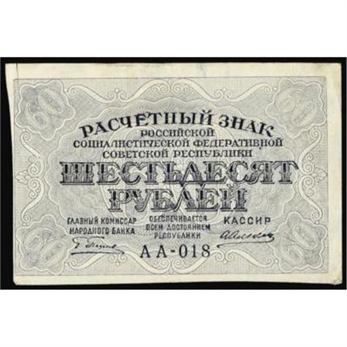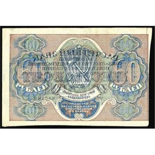 <style type="text/css"> body, td, th { font-family: Arial, Helvetica, sans-serif; font-size: 12px; color: #482424; margin: 0px; padding: 0px; } #header { background-image: url(http://www.bowersandmerena.com/ebay/images/template_v3_01.gif); clear: both; background-color: #590303; border-top-width: 2px; border-top-style: solid; border-top-color: #B38C4F; } #header #header_wrapper { height: 75px; clear: both; width: 800px; margin-right: auto; margin-left: auto; background-image: url(http://www.bowersandmerena.com/ebay/images/template_v3_03.gif); background-repeat: no-repeat; background-position: right; color: #F3EDCC; } #header #header_wrapper #header_logo { float: left; height: 75px; width: 444px; background-image: url(http://www.bowersandmerena.com/ebay/images/template_v3_02.gif); background-repeat: no-repeat; font-size: 10px; text-transform: capitalize; color: #B38C4F; } #header #header_wrapper #header_right { float: left; height: 75px; width: 356px; text-align: right; } #header #header_wrapper #header_right #headerLoginBtn { margin-bottom: 30px; } #header #header_wrapper #header_right input#txtSearch { color: #B49056; border: 1px solid #B49056; width: 175px; padding-top: 3px; padding-right: 3px; padding-bottom: 4px; padding-left: 3px; } #nav { height: 37px; background-image: url(http://www.bowersandmerena.com/ebay/images/template_v3_05.gif); clear: both; } #nav #nav_wrapper { height: 35px; width: 800px; margin-right: auto; margin-left: auto; border-left-width: 1px; border-left-style: solid; border-left-color: #B38C4F; } #nav #nav_wrapper a { padding-right: 15px; padding-left: 15px; border-right-width: 1px; border-right-style: solid; border-right-color: #B38C4F; height: 25px; padding-top: 10px; display: block; float: left; text-decoration: none; font-weight: bold; color: #5D0303; } #nav #nav_wrapper a:hover { color: #B38C4F; } #nav #nav_wrapper #search { float: right; padding-top: 7px; } #nav #nav_wrapper #search #txtSearch { font-family: Arial, Helvetica, sans-serif; font-size: 10px; text-transform: uppercase; color: #D2AE75; border: 1px solid #B38C4F; padding: 3px; } #content_bgd { background-image: url(http://www.bowersandmerena.com/ebay/images/template_v3_09.gif); background-repeat: repeat-y; background-position: center; padding-top: 15px; padding-bottom: 15px; background-color: #FBFBDB; } #content_wrapper { clear: both; height: auto; width: 800px; margin-right: auto; margin-left: auto; } .LotDetailWhite { line-height:normal; font-size:13px; font-family: arial,helvetica,sans-serif; color: White; font-weight: bold; } .LotDetailInformation { line-height:normal; font-size: 13px; font-family: arial,helvetica,sans-serif; } .LotDetailMessage { line-height:normal; font-size: 13px; font-family: arial,helvetica,sans-serif; color: red; } } tr.HeaderAuctionTitle td { color: #000000; font-weight: bold; padding: 2px; background-image: url(http://www.bowersandmerena.com/ebay/images/template_v3_05.gif); background-repeat: repeat-x; border-bottom-width: 1px; border-bottom-style: solid; border-bottom-color: #B38C4F; } table.AuctionSummary a, table.AuctionSummary a:link, table.AuctionSummary a:visited { color: #0000FF; text-decoration: none; } } td.tableHeaderLeft { border-left-width: 1px; border-left-style: solid; border-left-color: #B38C4F; } td.tableHeaderRight { border-right-width: 1px; border-right-style: solid; border-right-color: #B38C4F; } td.tableCellMiddle { border-left-width: 1px; border-left-style: solid; border-left-color: #B38C4F; border-right-width: 1px; border-right-style: solid; border-right-color: #B38C4F; padding: 5px; } tr.footer td { border-top-width: 1px; border-top-style: solid; border-top-color: #B38C4F; } </style> </head> <body> <div id="header"> <div id="header_wrapper"> <div id="header_logo"> </div> <div id="header_right"> </div> </div> </div> <div id="nav"> <div id="nav_wrapper"> <a href="http://www.bowersandmerena.com">Our eBayLive Auctions</a> <a href="#PaymentInfo">Payment Information</a> <a href="#ShippingInfo">Shipping Information</a> <a href="#About">About Bowers and Merena</a> </div> </div> <div id="content_bgd"> <div id="content_wrapper"> <table width="100%" border="0" cellpadding="5" cellspacing="0" class="AuctionSummary"> <tbody> <tr class="HeaderAuctionTitle" style="height: 25px;"> <td align="left" class="tableHeaderLeft" > </td> <td align="center" class="tableHeaderRight"> <span style="font-size: large;">Lot #2631. Russian Federation. Currency Notes, 1919-20 (ND) Issues Offset Error Note.</span> </td> </tr> <tr> <td colspan="3" class="tableCellMiddle"> ND (1919) issue. Error Note. 60 Rubles, P-100, VF to XF condition with border cut close on left and a strong offset of the face text on the back. .