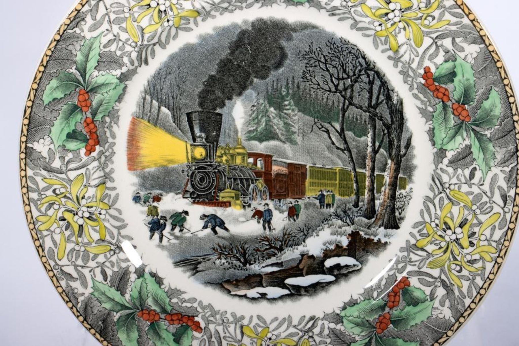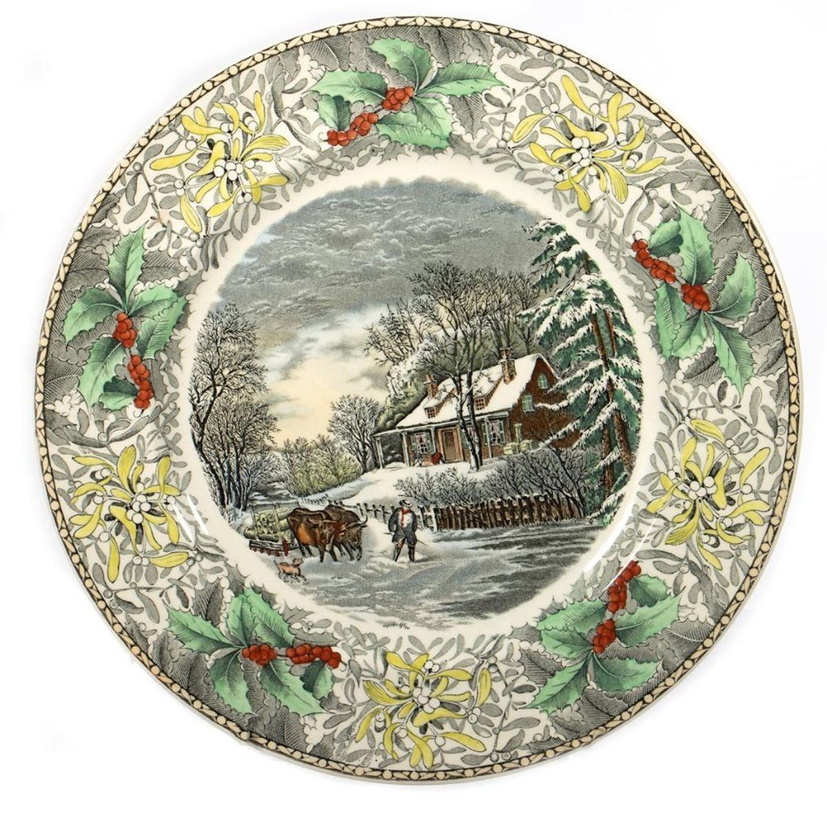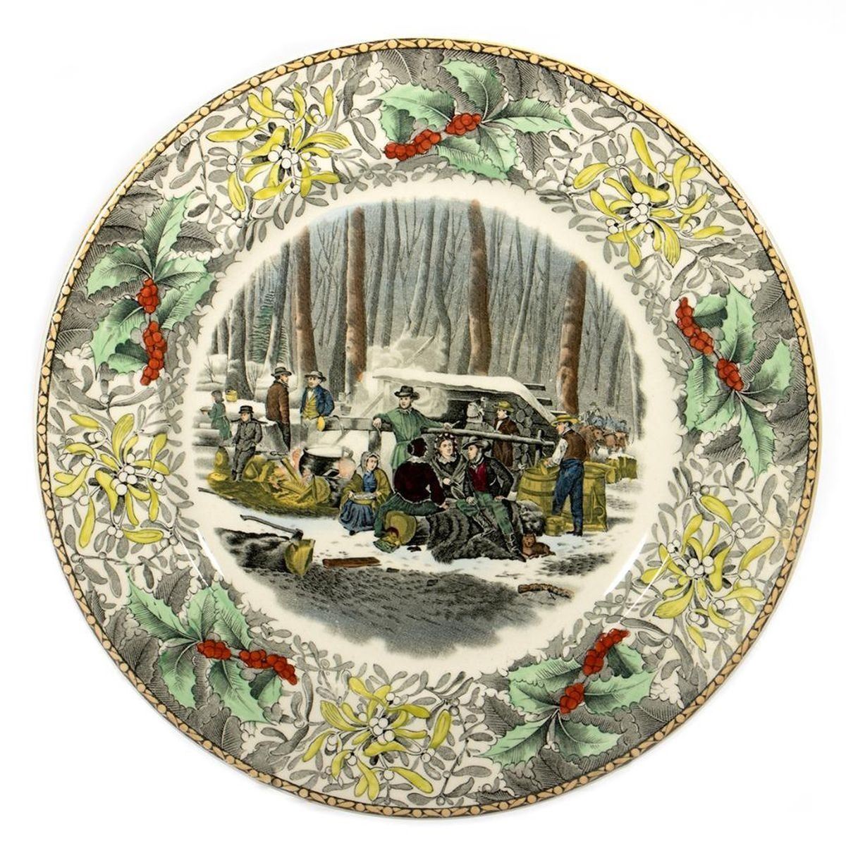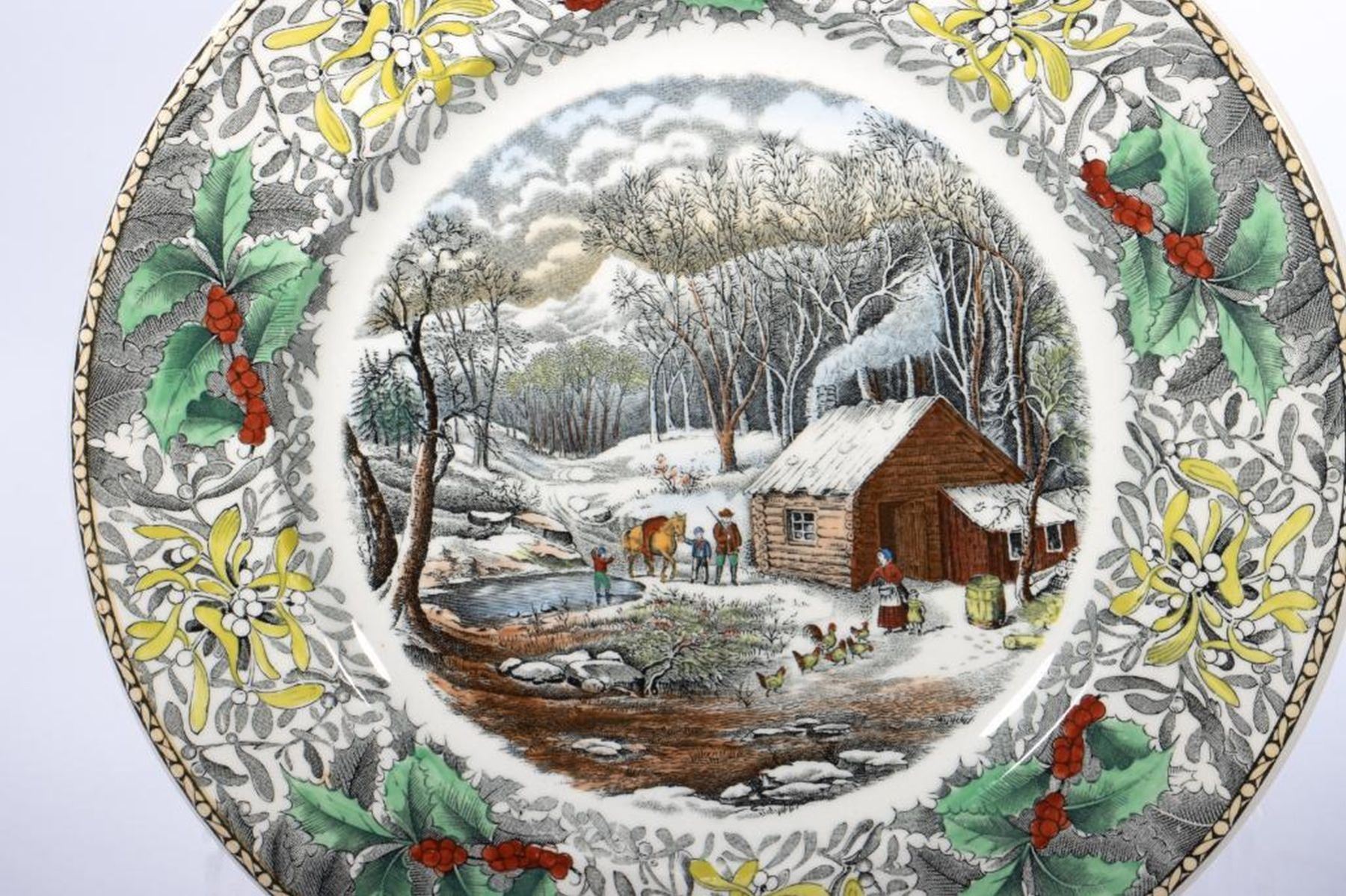 A set of twenty two 11in. Plates. Made by Adams for B. Altman. Each centering a nostalgic Americana scene within floral border. Condition: All very good.