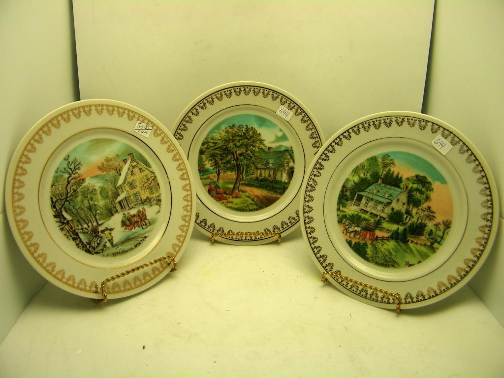 Currier & Ives 8" Plates - Winter, Summer & Autumn