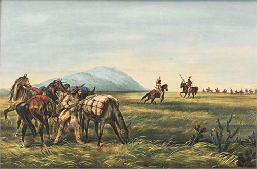 Currier & Ives Hand-tinted Print. "A Tense Moment in Enemy Country". 9 ½” x 14 ½”. 19th century. Good condition. (est $300-400)