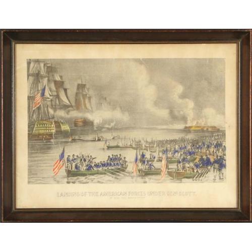 Currier and Ives, ?Landing of the American Forces? hand-colored lithograph.
