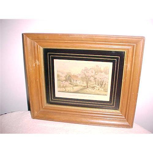 Currier & Ives Print, American Homestead, Signed, Spring, Framed 9 X 10.5