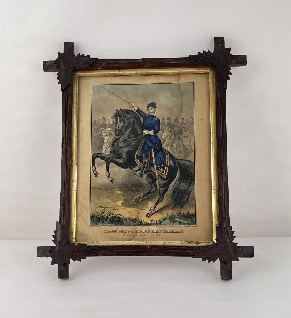 1862 Currier and Ives. Water Damaged. Eastlake frame. 16 1/2" by 19 1/2" framed.