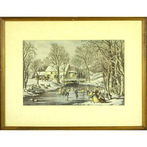 This print is an outstanding example of the many lithographs that are now collected from Currier and Ives. Very intricate detail, and outstanding hand-coloring make this an amazing picture that exhibits the excellent quality of work that C&I was deservingly celebrated for. This print is in good condition, showing all the exceptional colors. Framed in a wood frame and matted in a cream color that enhances and brightens the cool hues of winter in the picture, and the size of the piece is 15? x 19.25?. An excellent addition to any collection, and listed at a very agreeable price.