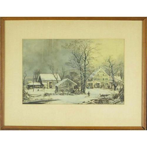 Currier and Ives, ?Winter in the Country, A Cold Morning? reproduction print.