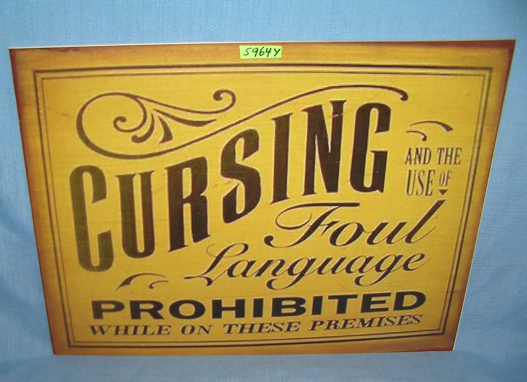 Cursing and foul language prohibited retro style advertising sign est. value $50.00-$65.00