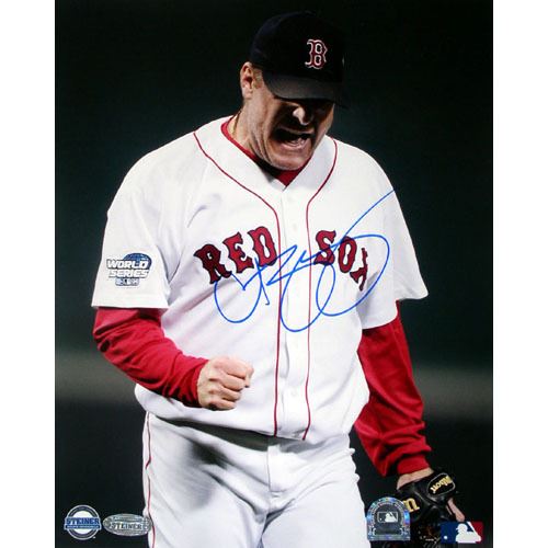 Curt Schilling 2004 WS GM 2 Pump Fist 8x10
