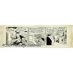 <B>Curt Swan - Superman Daily Comic Strip Original Art (McClure Newspaper Syndicate, circa 1950s).</B></I> Is he Jimmy Olsen or private eye Matt Fulmer? That is the question in this dazzling <I>Superman</B></I> daily, dated 5-1, from the late 50s. Curt Swan's smooth and silky brush work is perfectly balanced by the Craftint toning which permeates the art. This strip measures 23.25" x 7.5" with a 19.25" x 5.75" image area. Some slight discoloration along the extreme edges, otherwise the work is in Excellent condition.