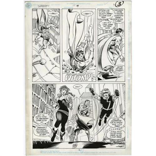 <B>Curt Swan and Kim DeMulder - Superboy #15, page 3 Original Art (DC, 1991).</B></I> Superboy encounters Glyder and Tarot in the year 2240, in this page from "It's the End of the World as We Know It (and I Steal Time)," written by John Moore. Penciled by the legendary Curt Swan, this page has an image area of 10" x 15" and is in Excellent condition. Signed by Curt Swan at the bottom of the final panel. <BR><BR><b>Shipping:</b> Flat Material, Small (<a target="_blank" href="http://www.heritageauctions.com/common/shipping.php">view shipping information</a>)