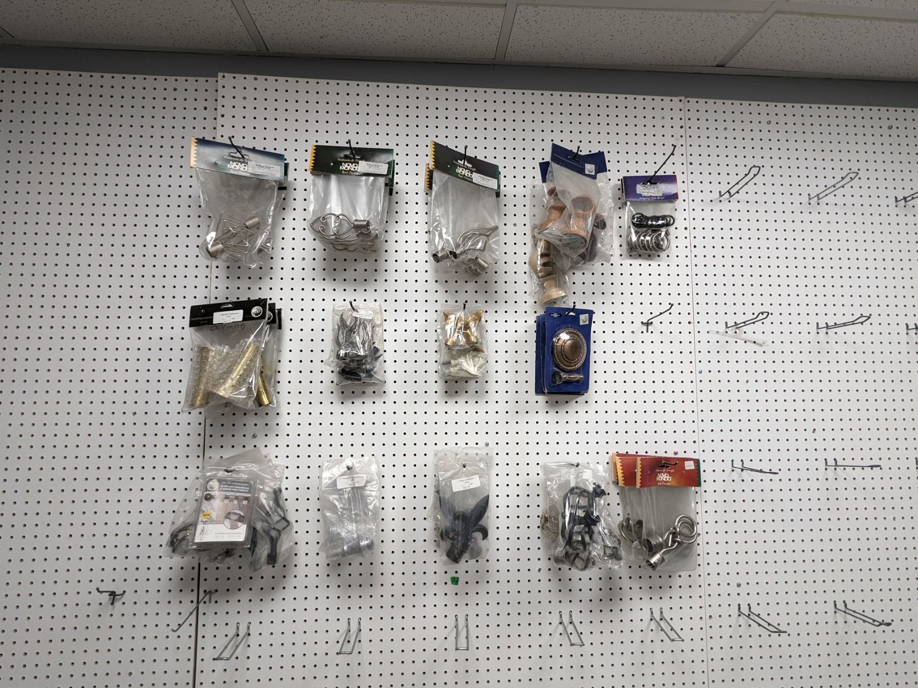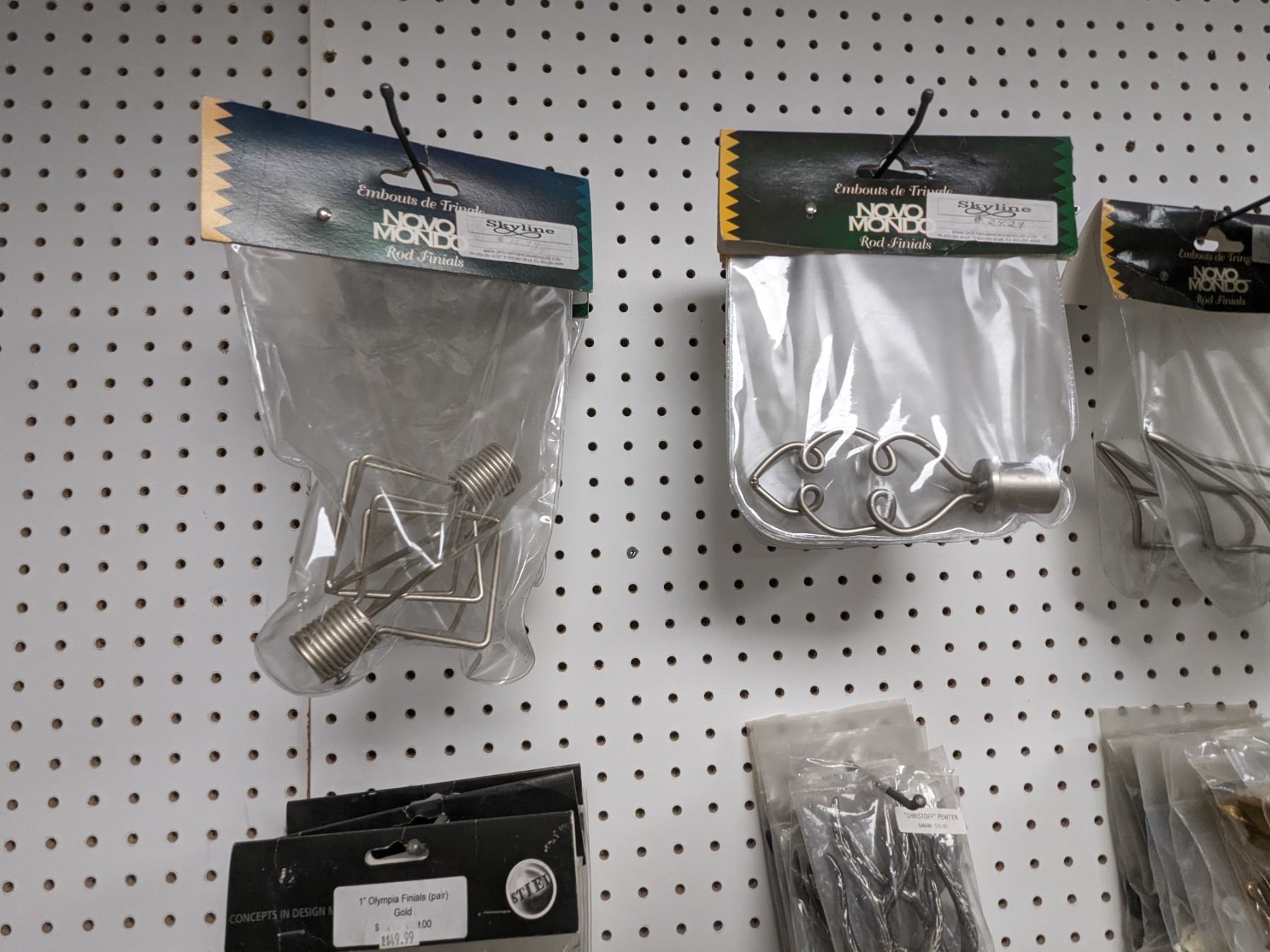 Curtain Rod Ends on Peg Board Ea Package Valued over $20 You will need to bring your own tools and manpower to remove all won lots. Zaks Auctions and its staff will not have any tools on hand and will not be assisting with the removal, dismantling or loading of any won items. Any damage done to the premises will be charged to the winning bidder. All pickups will be by appointment only. Any walk-ins will be turned away.All items are sold as is, where is. There will be absolutely no refunds, no returns, no credit and no reimburesement for any lot. It is strongly recommended you view the lots you are interested in on Thursday March 7. This is a you bid, you buy, you remove all purchased lots, auction. Any article not removed by 5pm on March 10 will result in surplus removal fees to your invoice and payable immediately once invoice has been updated and emailed to you.