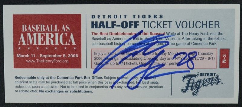 Curtis Granderson Signed Baseball Detroit TIger Ticket Stub COA