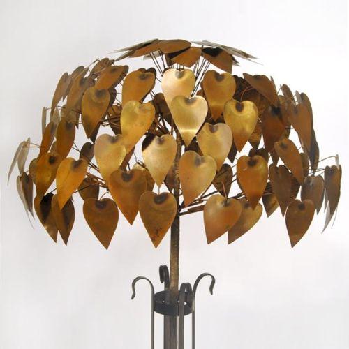 65h x 27w inches ,red and yellow copper, iron, stone, signed Jeré 72, in original vintage very good condition