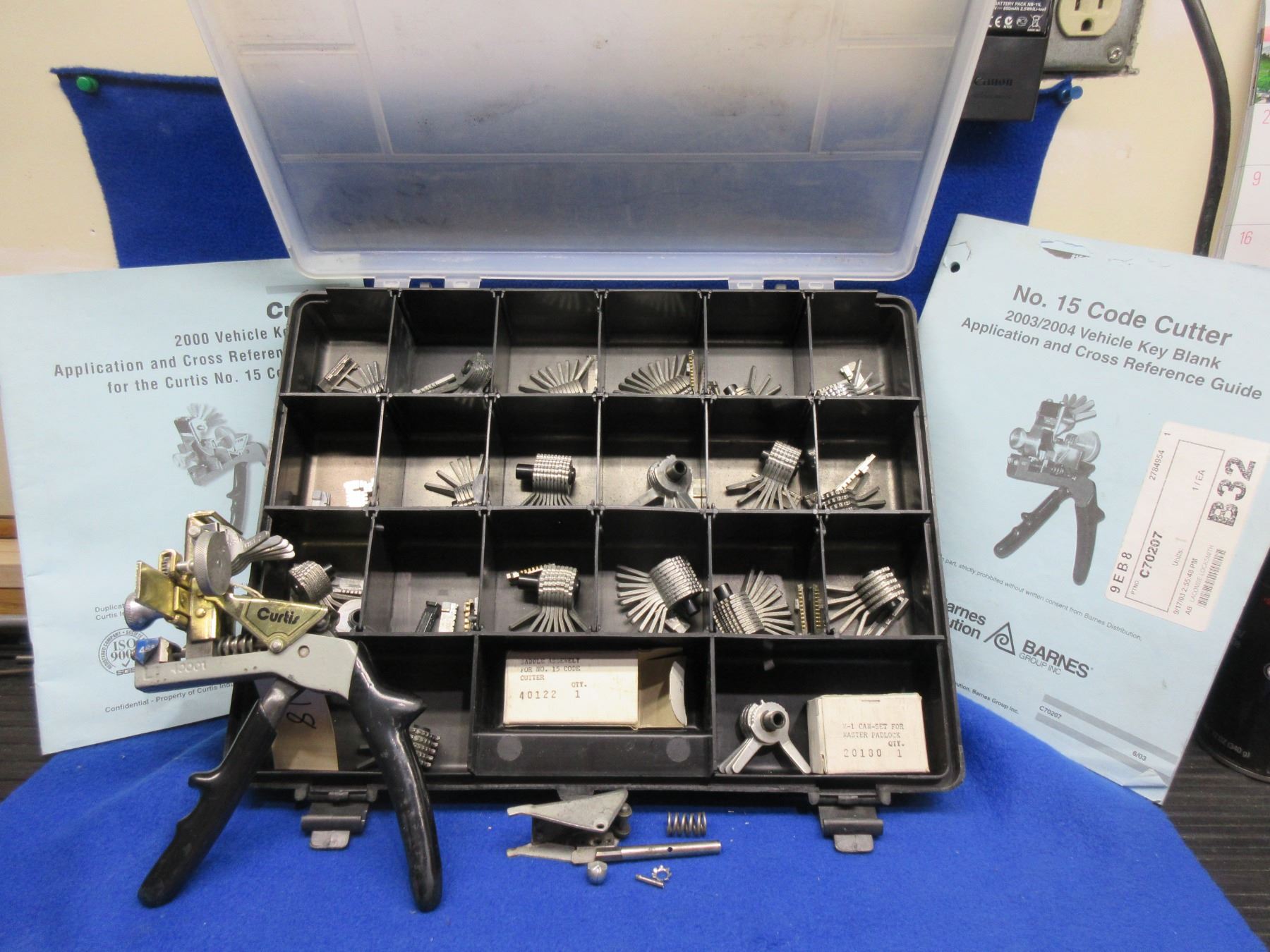Curtis Model 15 Code Cutter and 2 Cross Reference Guides - Comes with plastic case, 20 camsets and 25 carriages