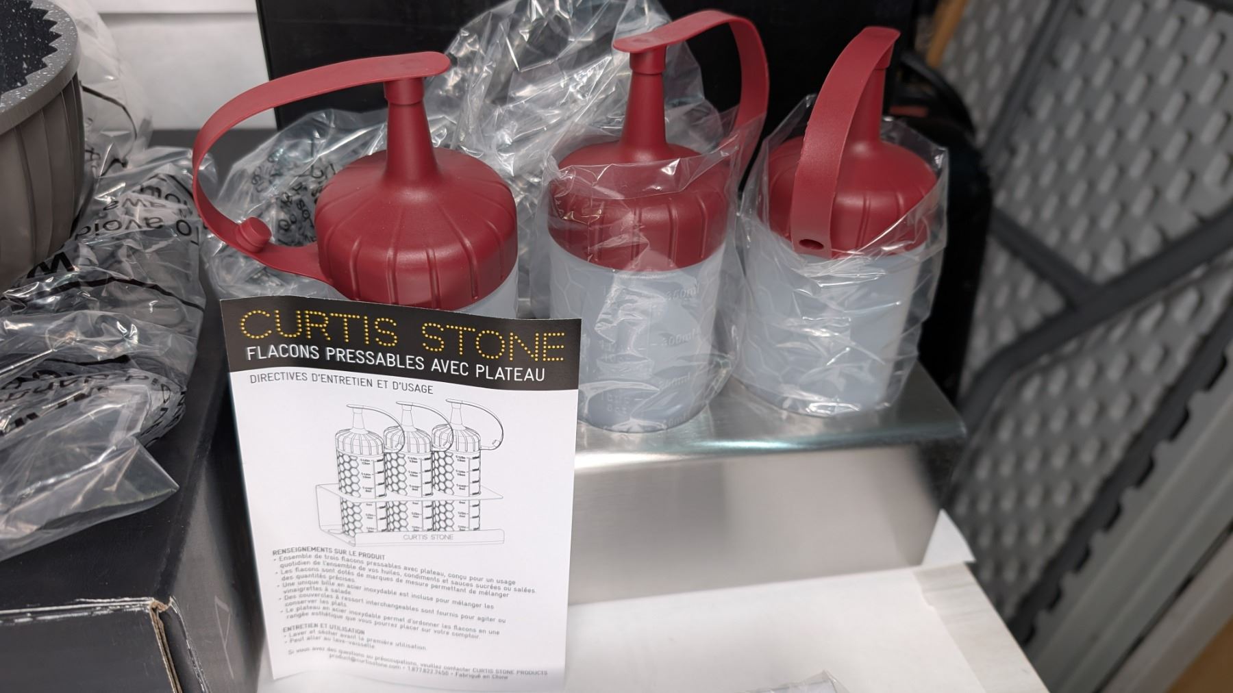 Curtis Stone Bundt Pan Three Squeeze Bottles on Tray Maxwell Williams Tray