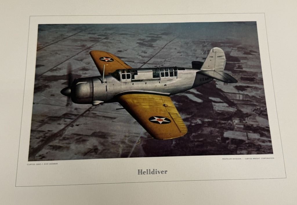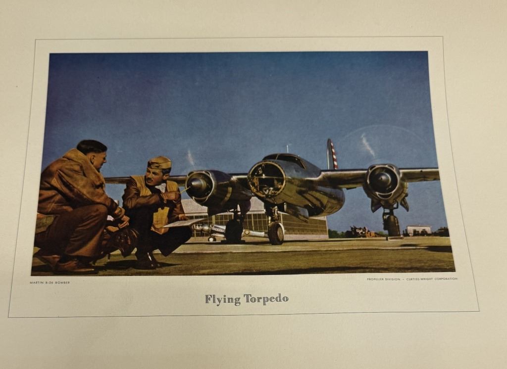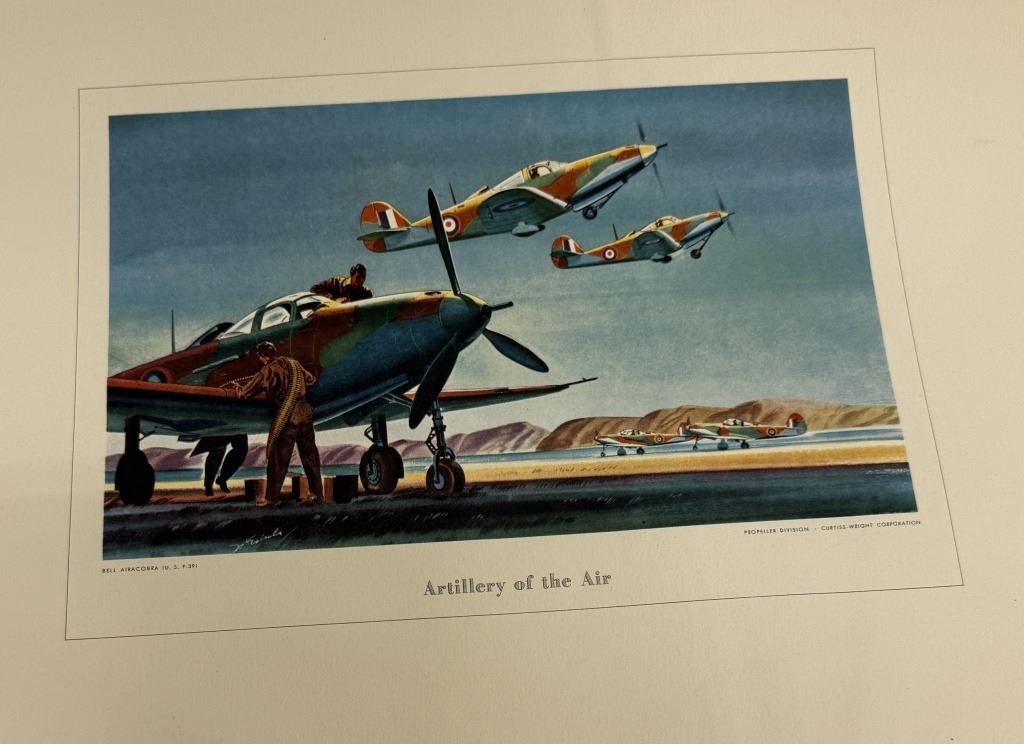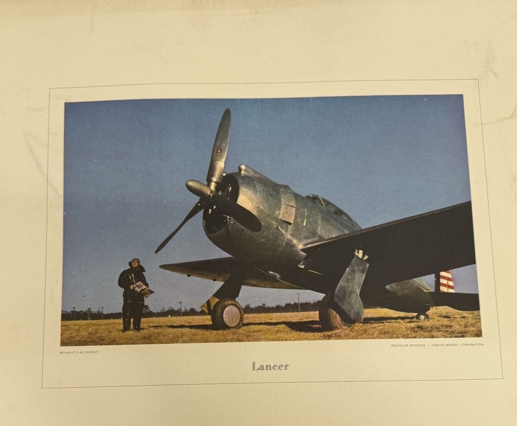 Item/Description: Includes 18 Curtiss-Wright Propeller Division WWII aviation prints featuring pictures of the Lancer Republic P-43 pursuit, the Helldiver-Curtiss S82 C-1 dive, and the Flying Torpedo-Martin B-26 bomber.