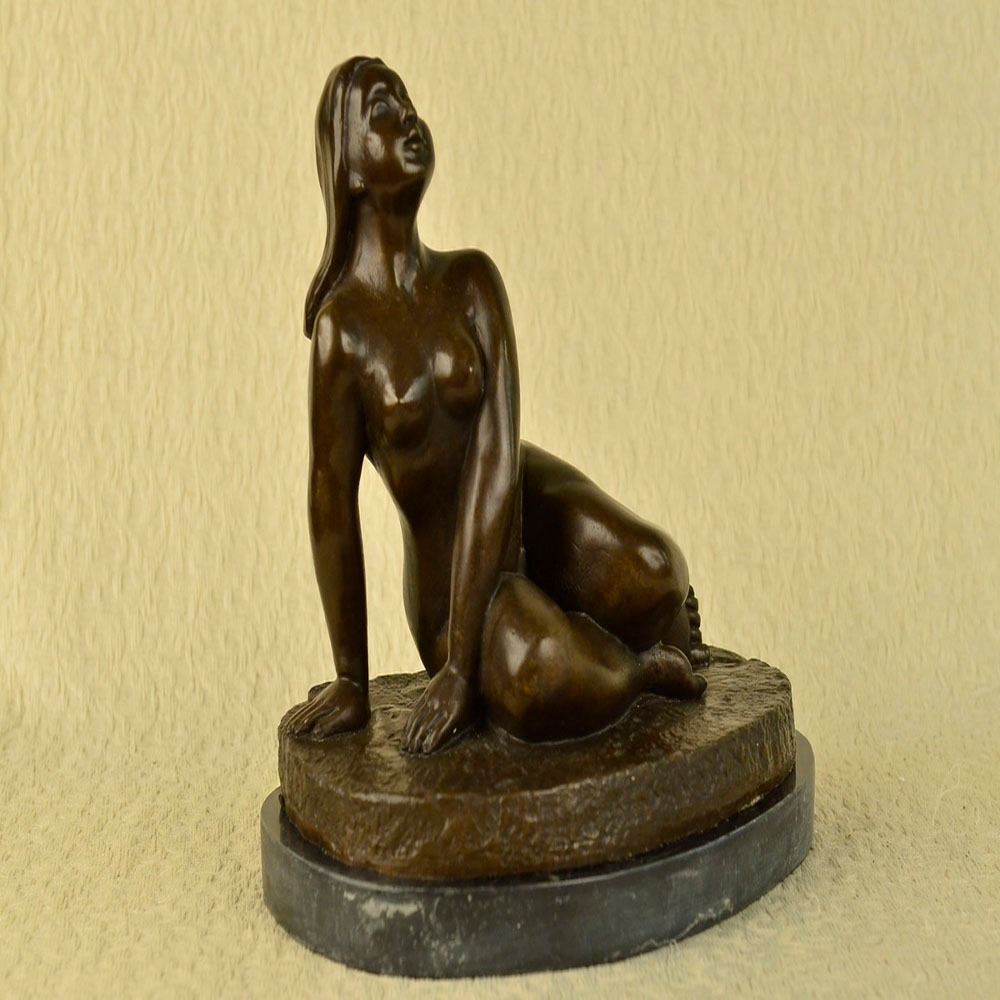 An abstract nude female Sculpture tell this is a powerful statement in the world of artist. This wonderfully curvaceous woman bears the wide hips commonly attributed to femininity and fertility. It is a 100% Bronze, cast using the lost wax method and it stands tall on a marble base. Bronze Dimensions with Marble Base: Height 12 X Width 12 inches. Weight: 20 LBS.