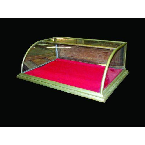 Curved Glass Counter Top Showcase. Nickel, good condition. 36 x 24 x 12 inches.