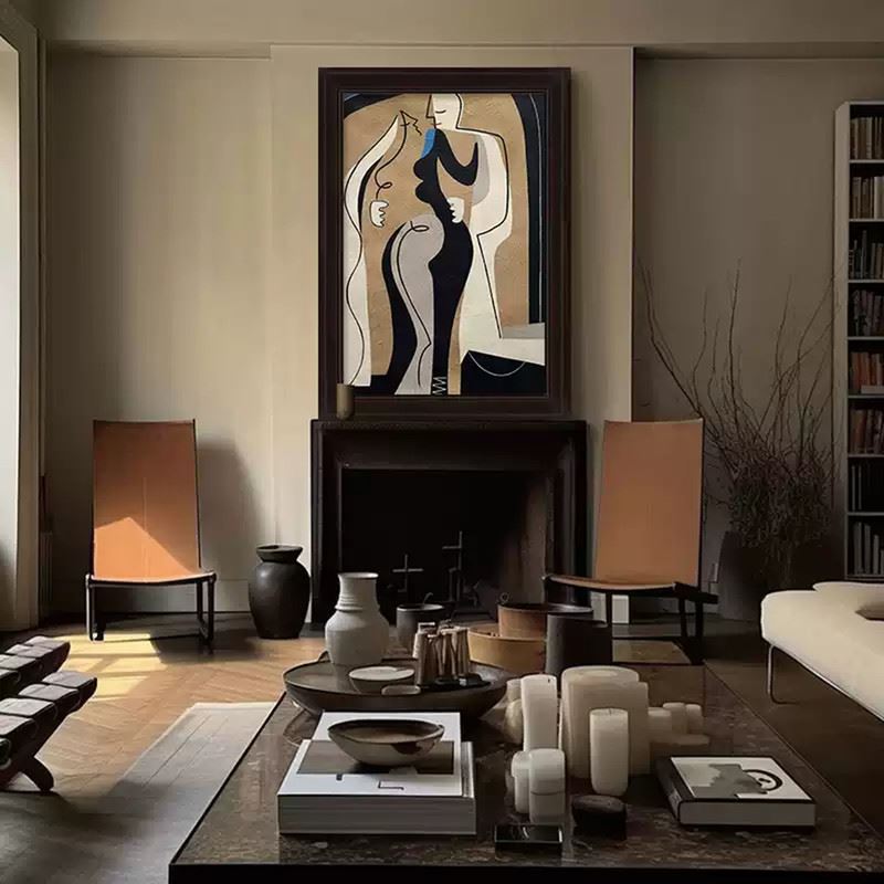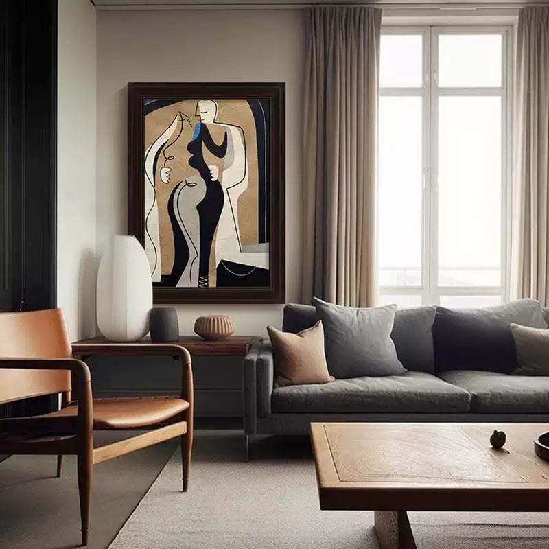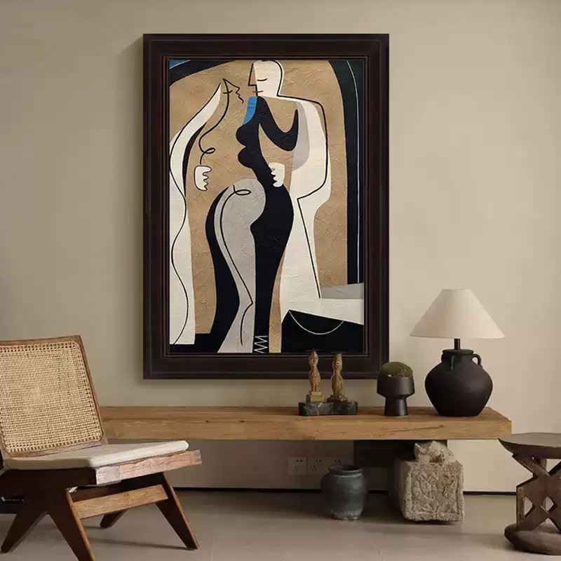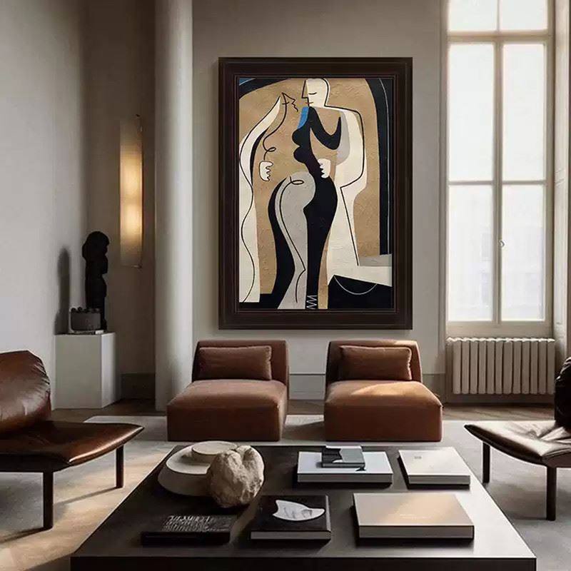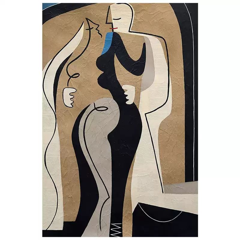 This artwork uses simple black-and-white tones and smooth curves to depict the human form. The bold color blocks and simplified shapes infuse the composition with a powerful expression of modern art. Dimensions: 24 x 35 inches.