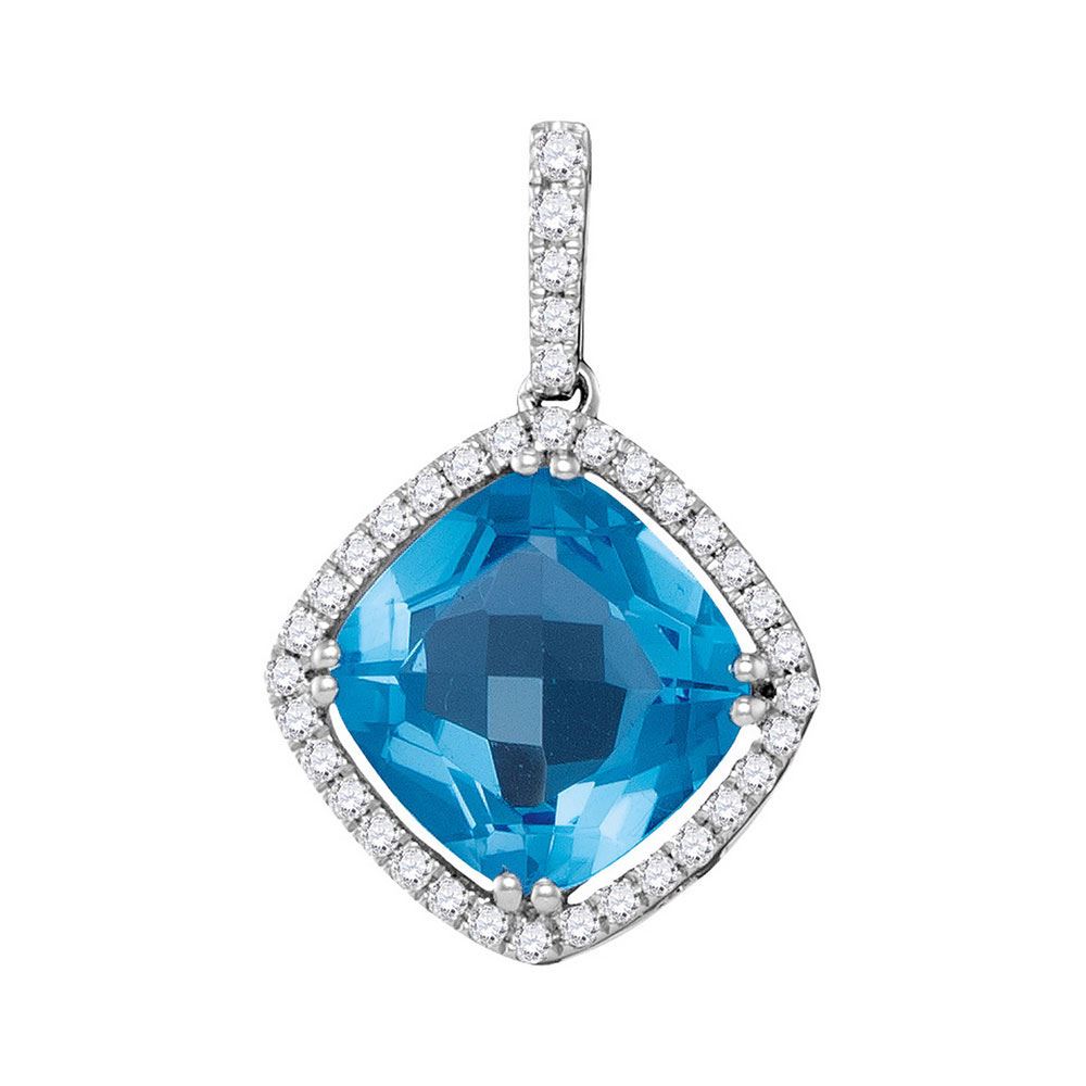 14kt White Gold Womens Cushion Blue Topaz Diamond Square Solitaire Pendant 3-1/2 Cttw