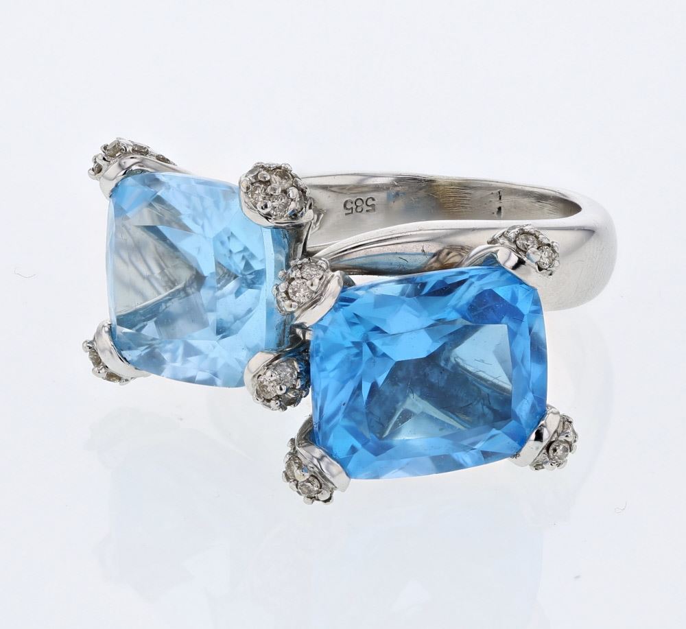 Cushion cut 2-stone Topaz Diamond Ring in 14K White Gold | 335346 6.5 Grams, featuring 17.42 White Diamond Round ct 2 0.69 ct 80 ct 14 ct