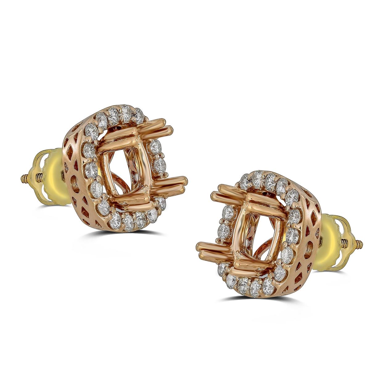 Cushion Cut Diamond Semi-Mount Earring in 14K Rose Gold|439662 Grams, featuring 0.69 ct 36 ct ct 14 ct
