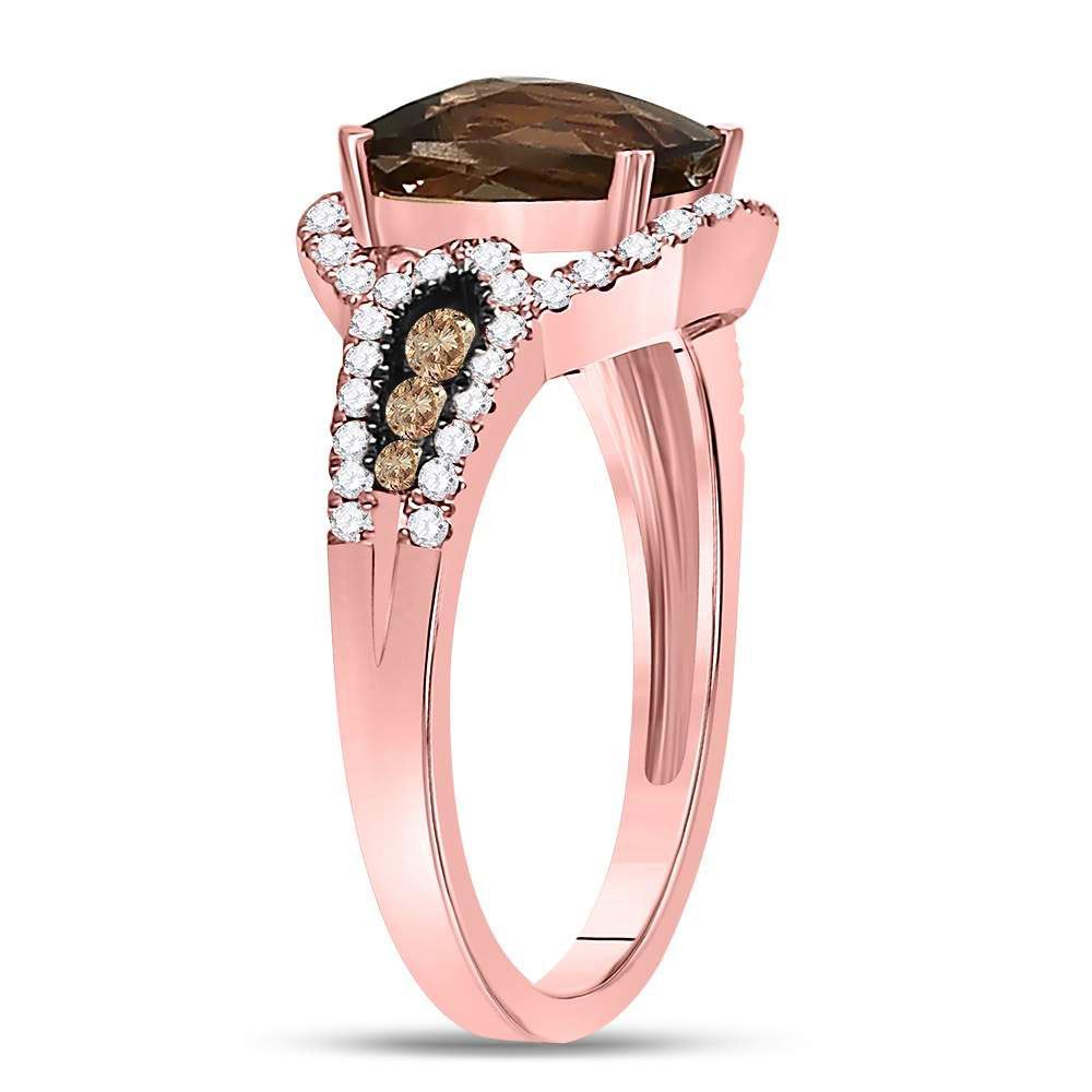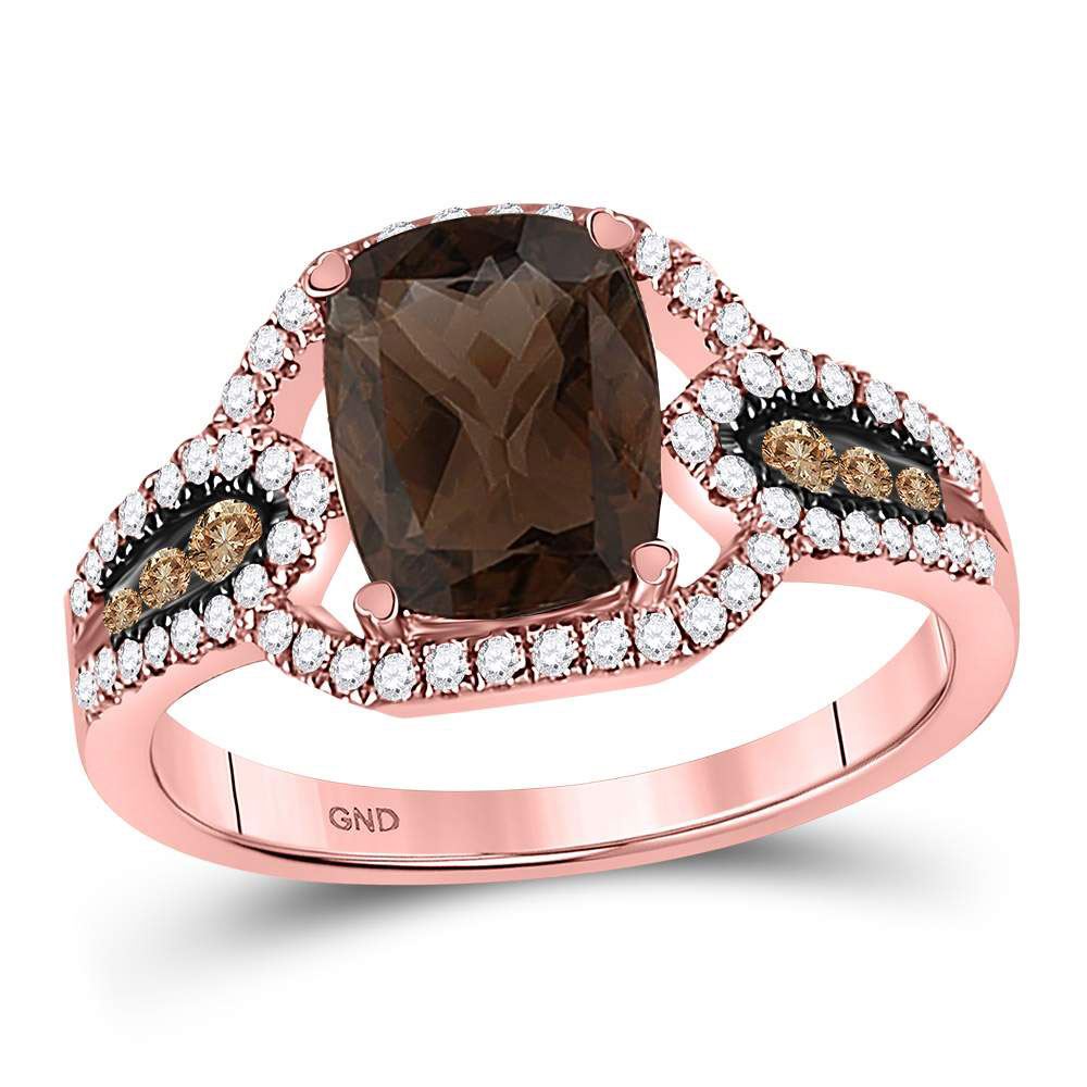 10kt Rose Gold Womens Cushion Smoky Quartz Brown Diamond Solitaire Ring 2-1/3 Cttw