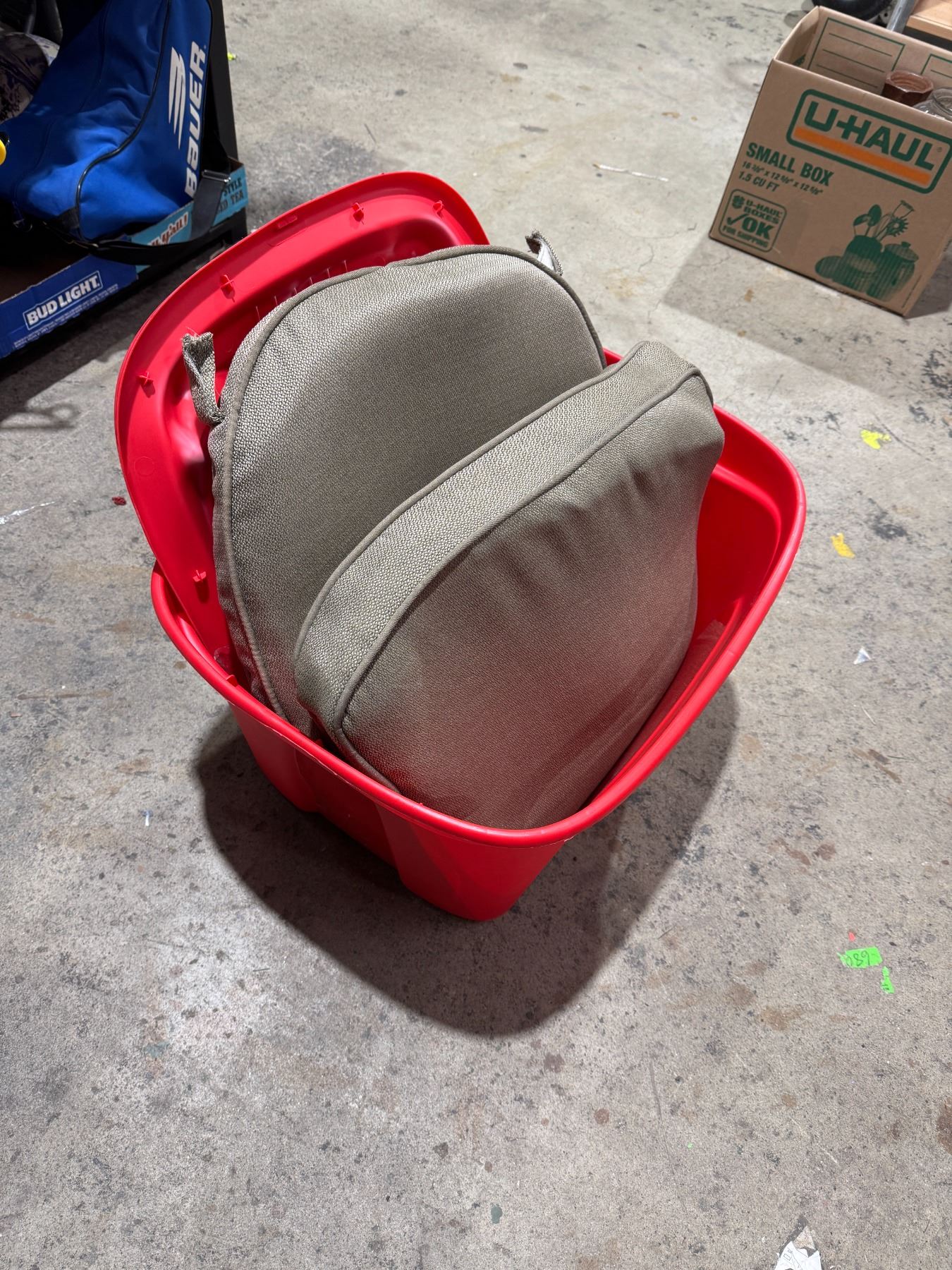 Cushions and bin with lid