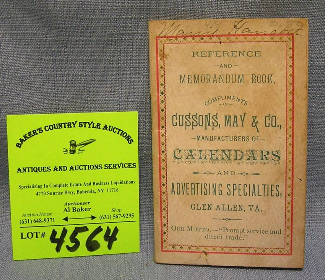 Cussons, May and Company calendar manufactures advertising note booklet dated 1898 $30.00-$40.00