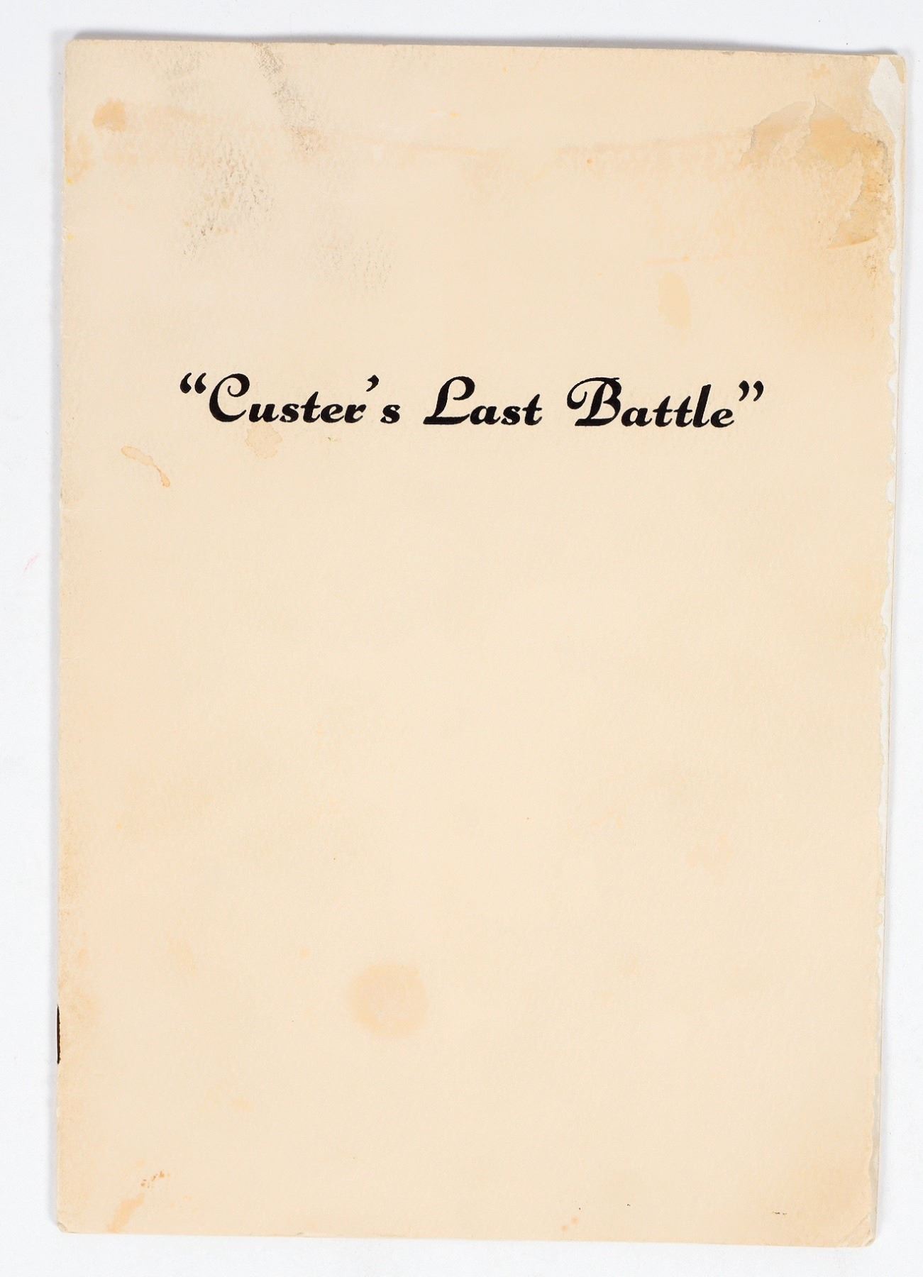 Custer's Last Battle. A handout by Anheuser-Busch, Inc. St Louis, Mo. 12 pgs. Most current date in the handout is 1892. Could not find anything titled 'Custer's Last Battle" It does reference the painting that Adolphus Busch had commissioned and presented to the Seventh Regiment U.S. Calvary in 1890. The handbook covers the entire battle. Very rare and in, except for some discoloration, excellent cond.