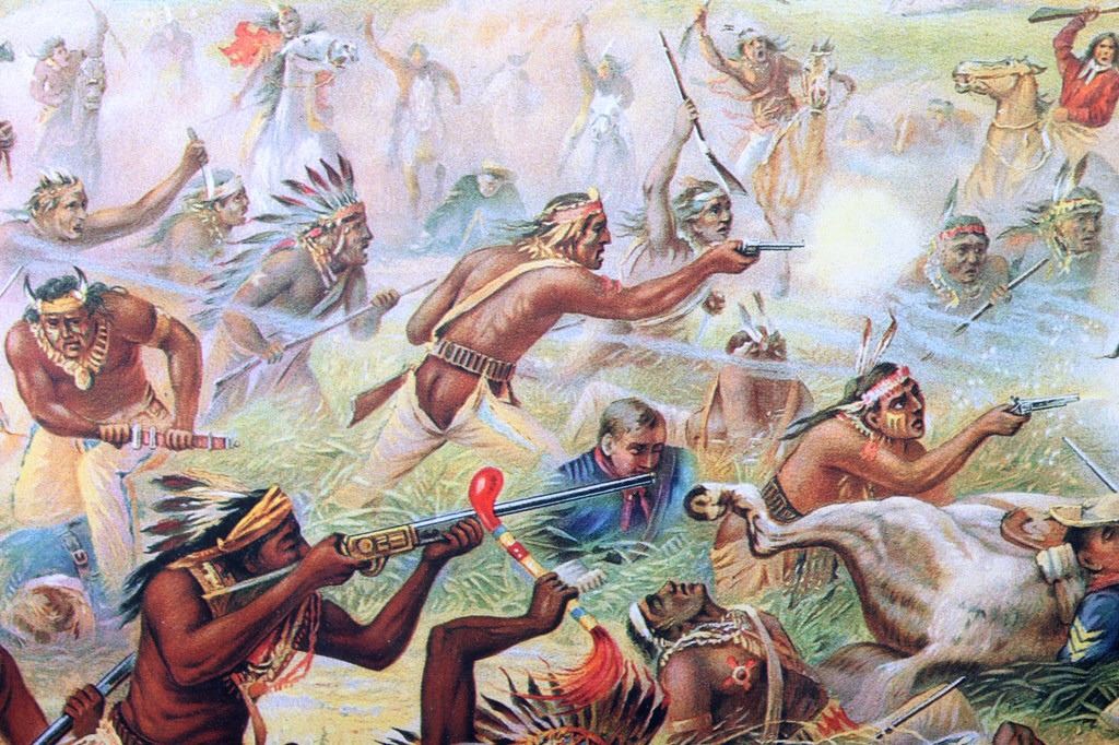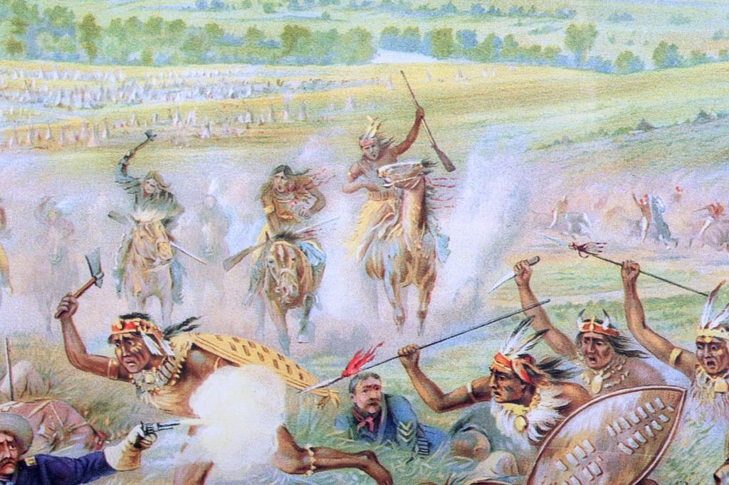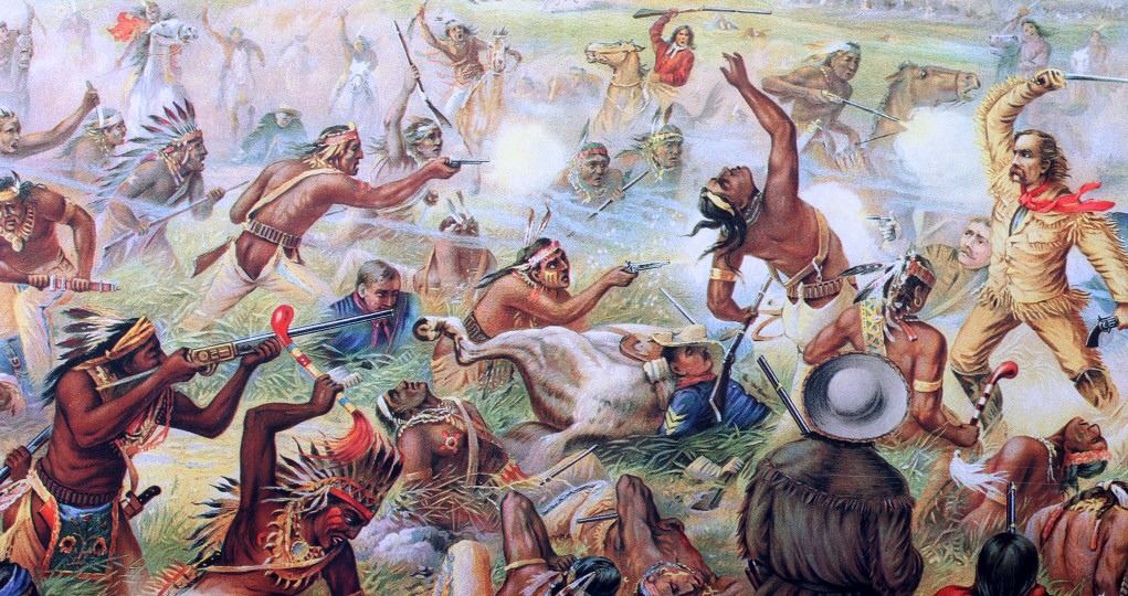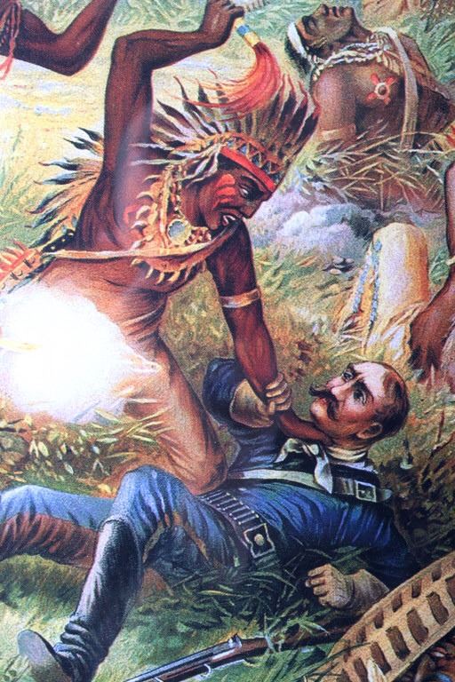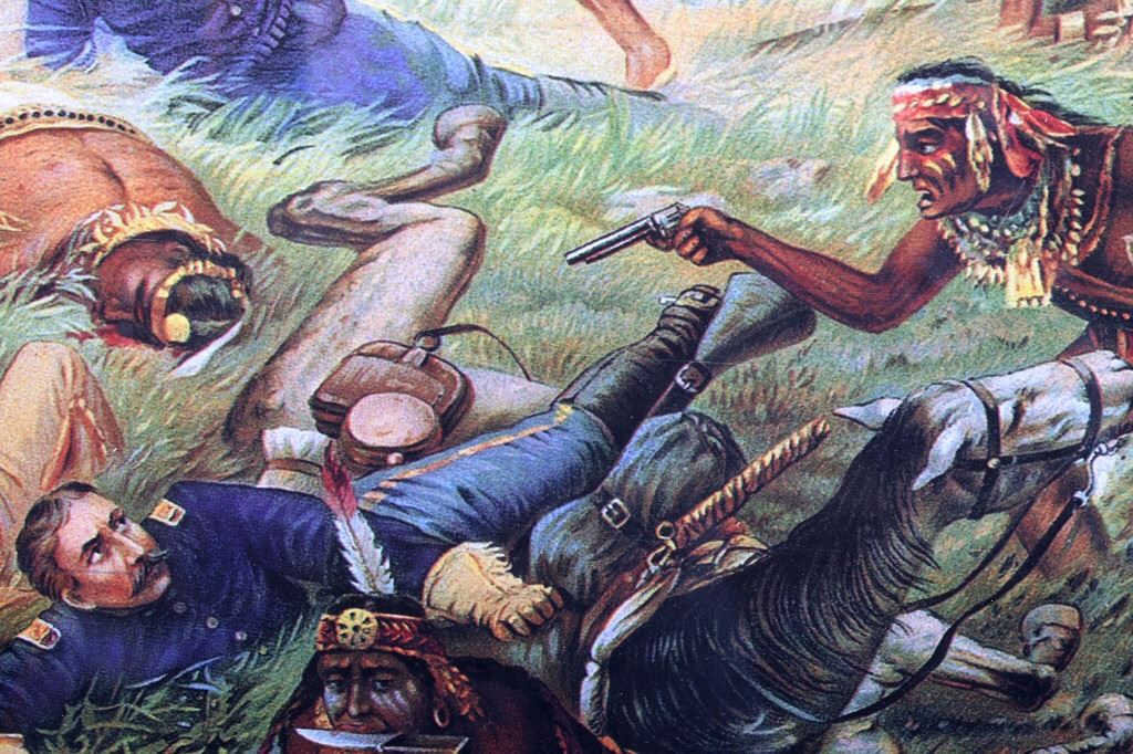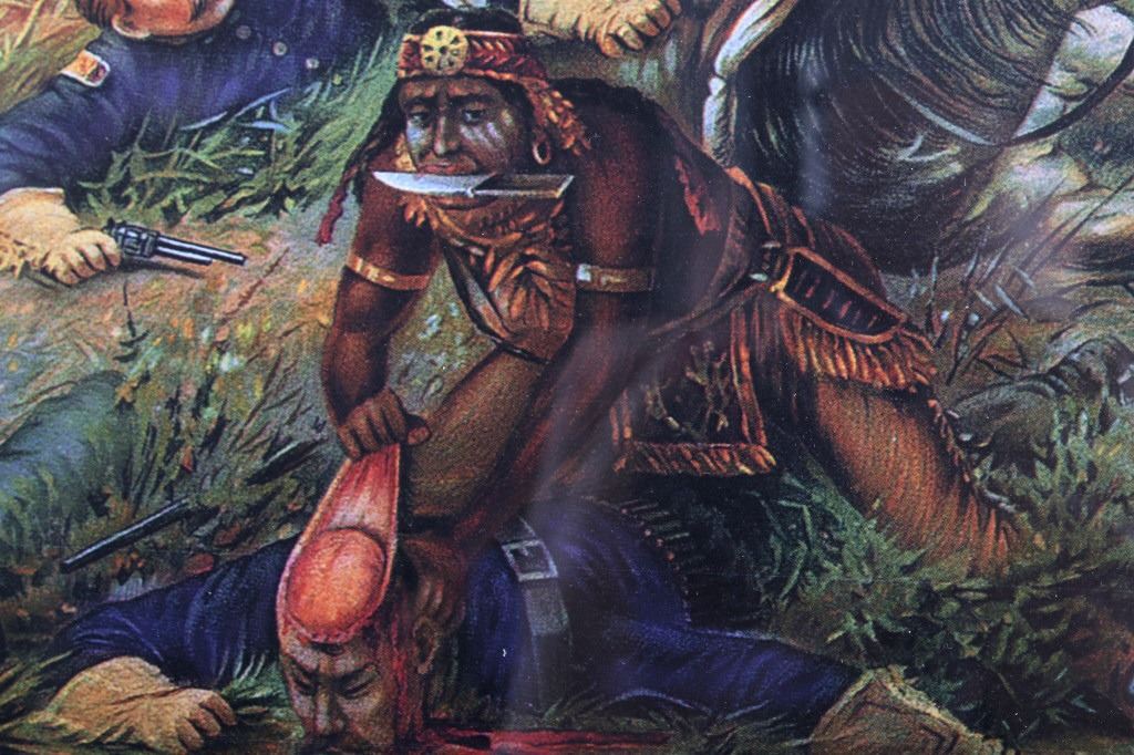 For your consideration is this well known poster of Custer's Last Fight--Anheuser Busch Brewing Association. The original, painted by Cassilly Adams in 1885, was acquired by Anheuser Busch Brewing Association in 1896 as the result of a St. Louis Saloon's bankruptcy proceedings. At the time the painting was valued at $10,000. It is said that the artist used Native Sioux in battle dress and cavalrymen in period uniforms as models; it took him one year to complete, measuring 9.5 feet x 16.5 feet. Anheuser Busch produced a lithographic print of the painting and began distributing prints to their distributors, bars, and other outlets. The original was donated by the brewery to the 7th Cavalry, as stated on the advertising print. It was destroyed by a fire in Fort Bliss, Texas in 1946. The print being auctioned today is in a beautiful gilded wood frame and is in excellent condition. It measures 43.5" x 36".