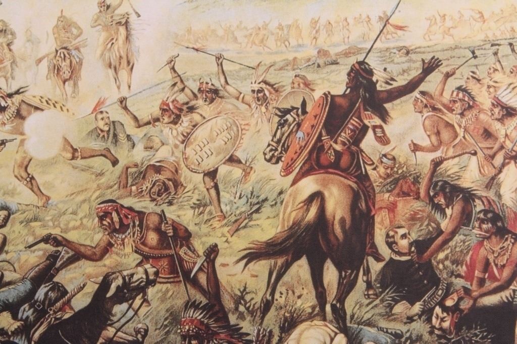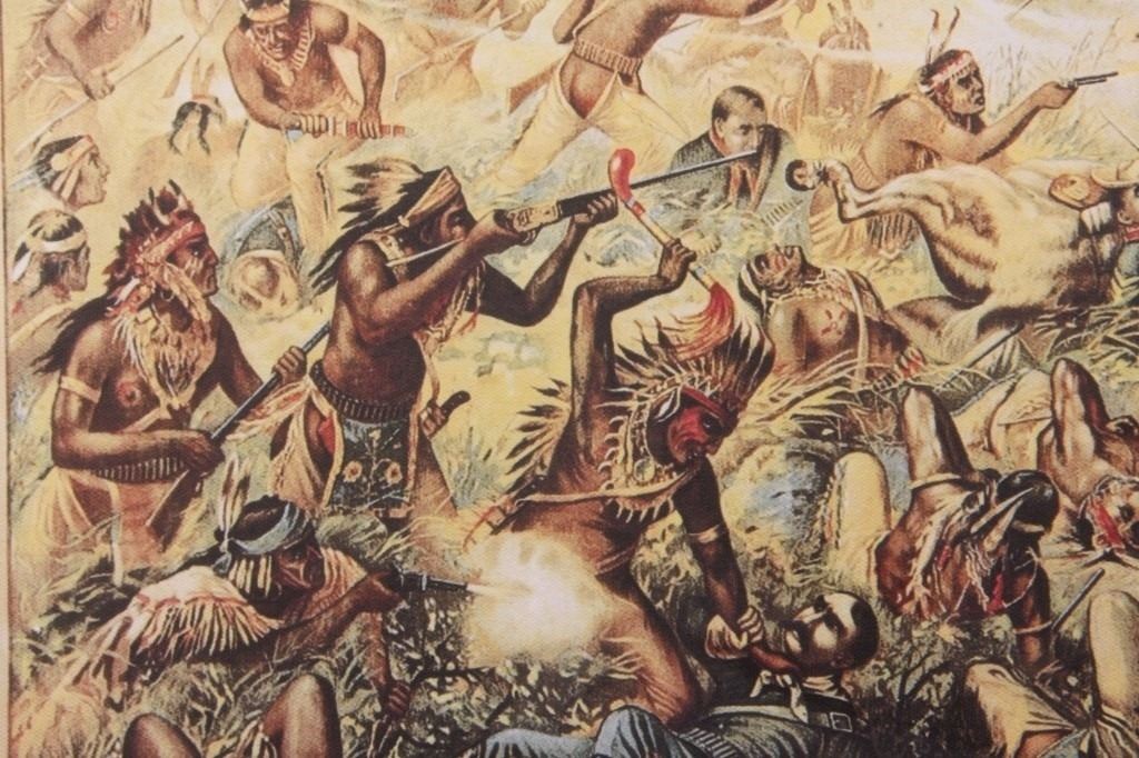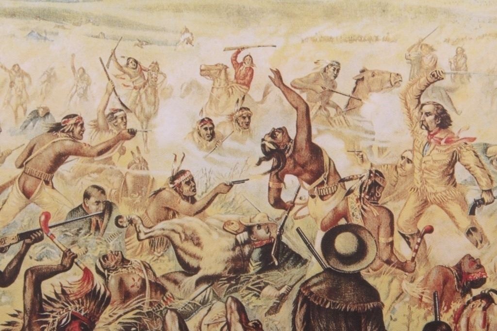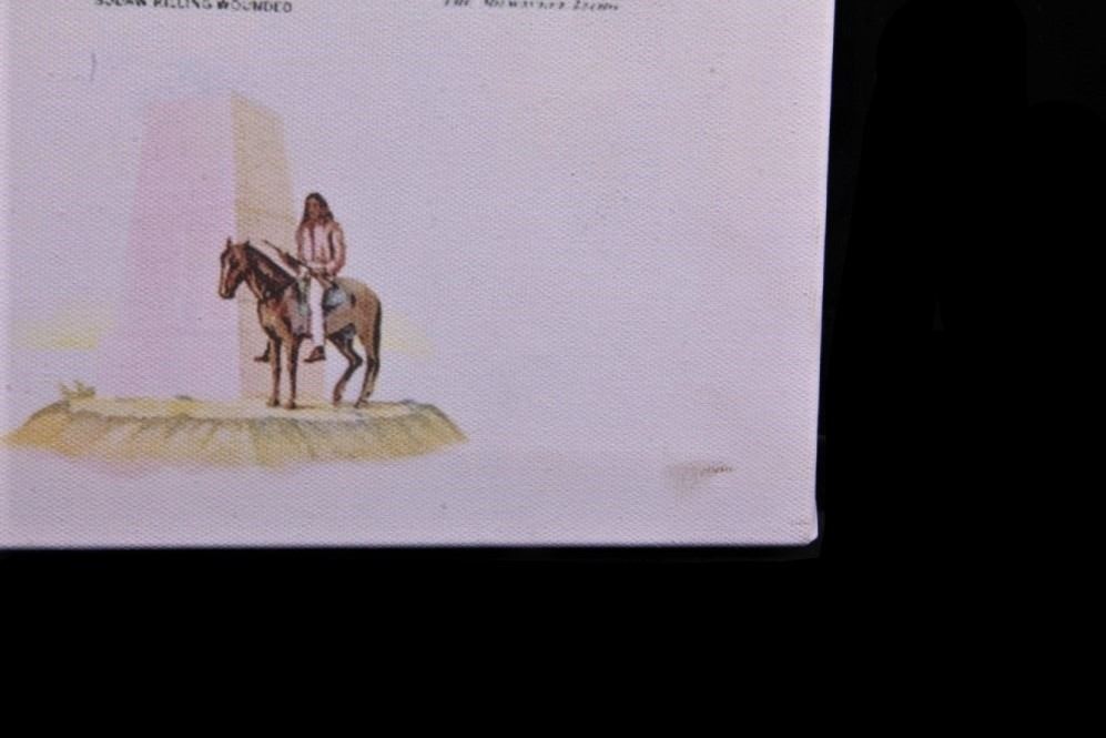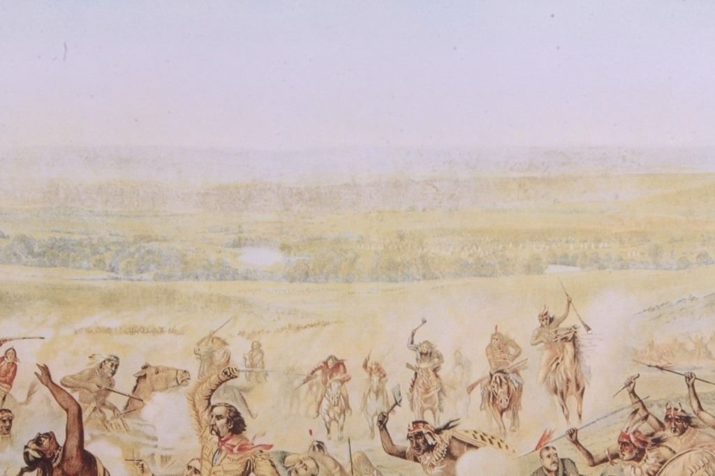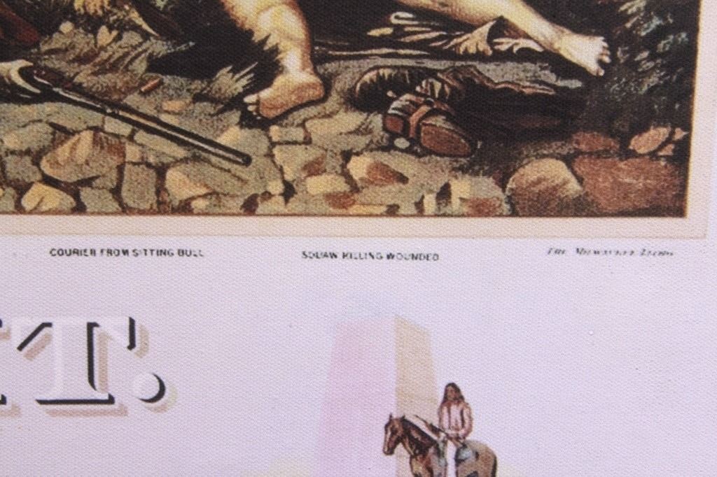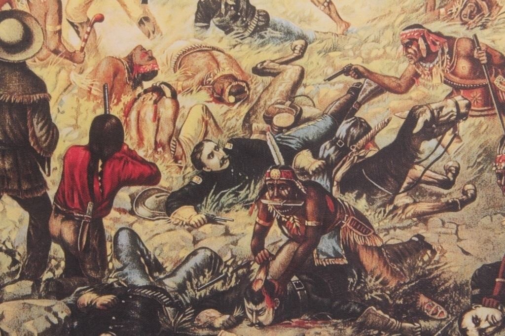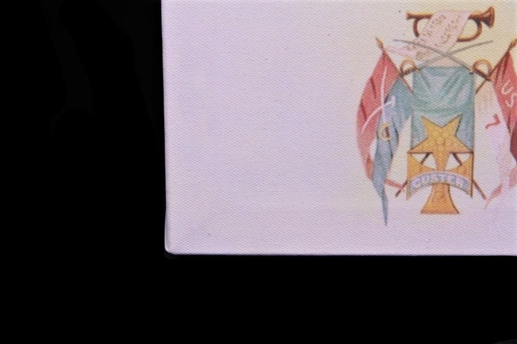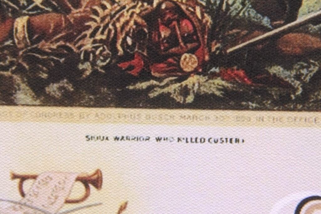 This lot includes a chromolithograph of “Custer’s Last Fight” by Anheuser Busch. This chromolithograph on canvas is based on the Cassilly Adams painting that was inspired by the narrative of the battle by a scout named Curley. The original painting by Adams was completed in 1888 and sold to John Ferber, who owned a saloon in St Louis, Missouri. This was used as an advertisement for Busch for many years. This chromolithograph measures 42” by 32”.