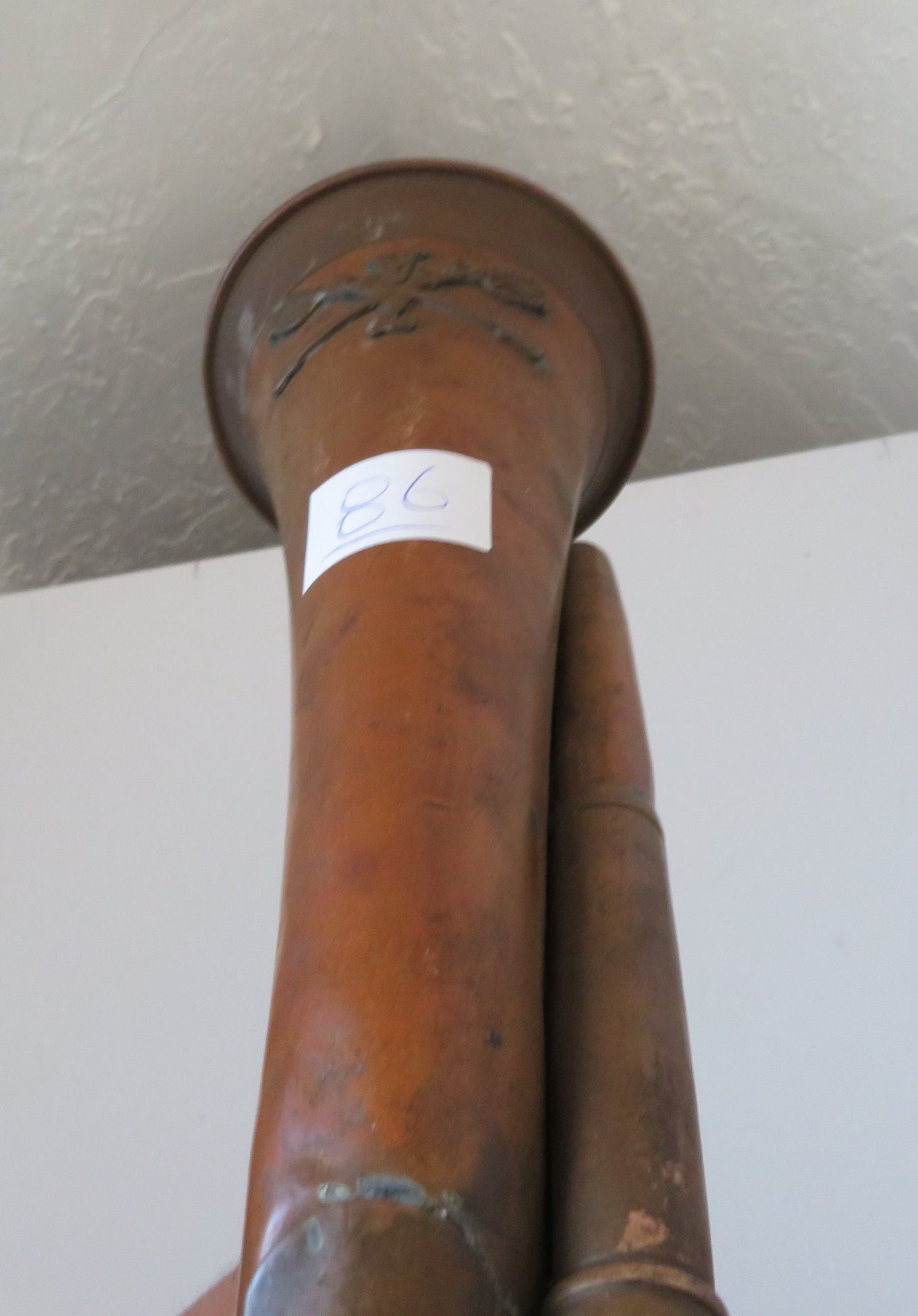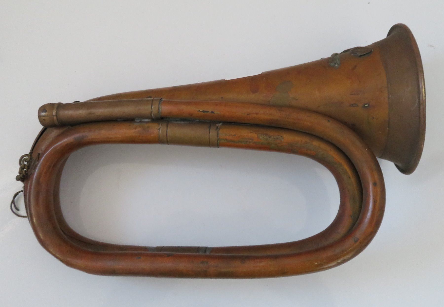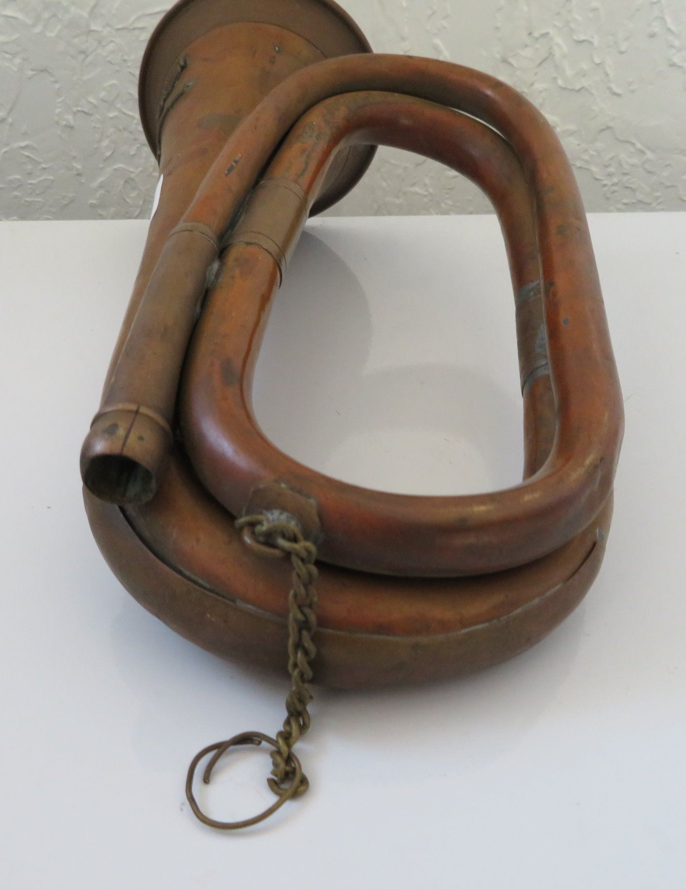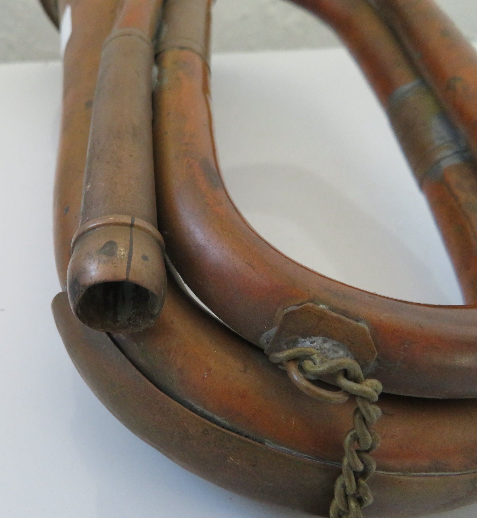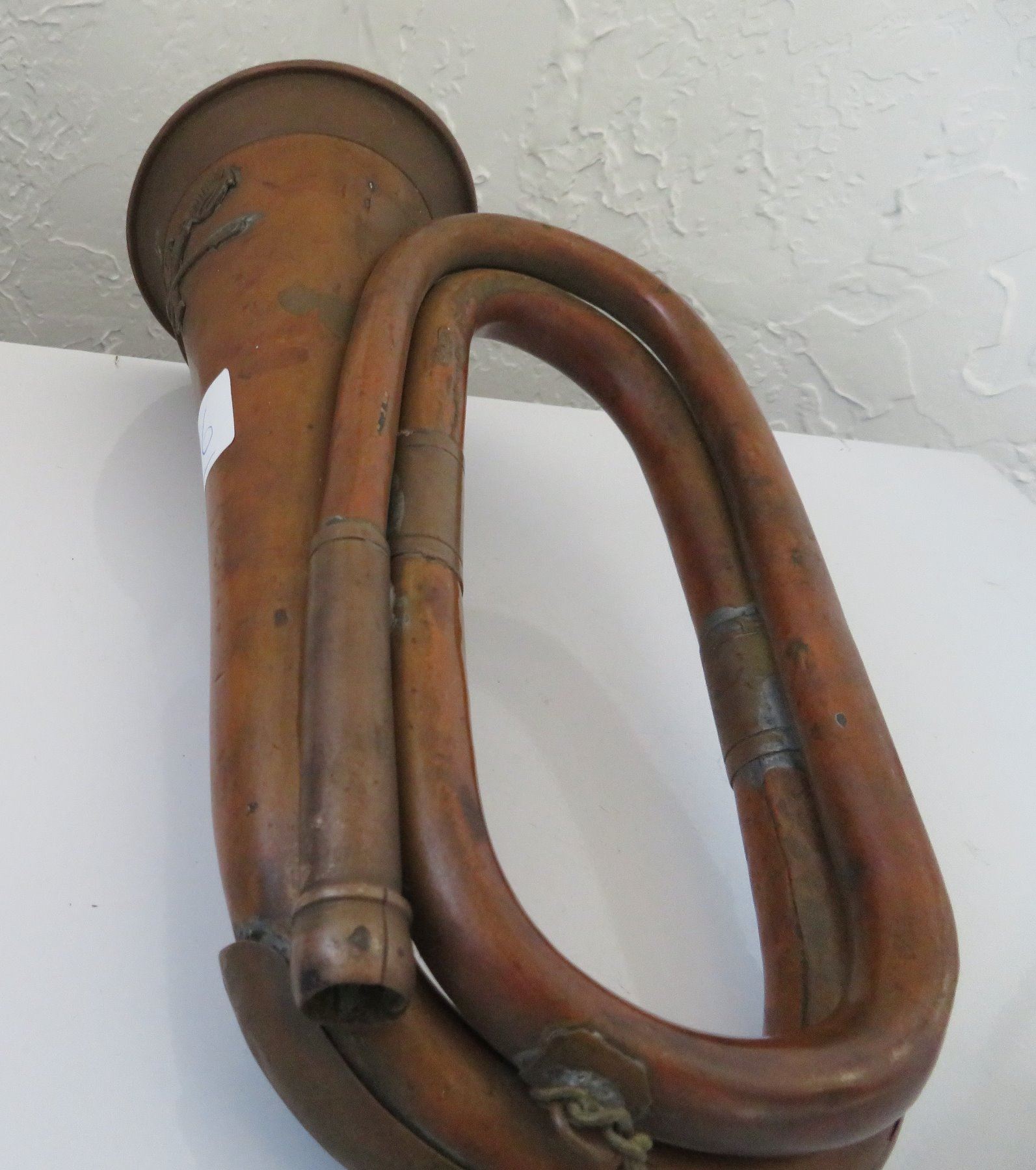 "Custer's Last Stand" Trumpet, c. 1850s-80s. Made of brass, the item measures 4" x 11". United States. Cavalry trumpet with excellent signs of wear, A/7 cross swords. Condition: Good, mouthpiece missing, see images. Shipping: $30.00 w/insurance and signature, see images.