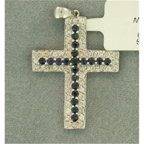 <tr><td>Title:Custom 18k White Gold Diamond & Sapphire Cross</td></tr>