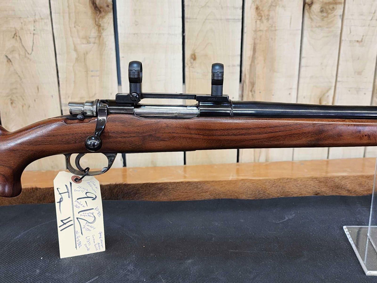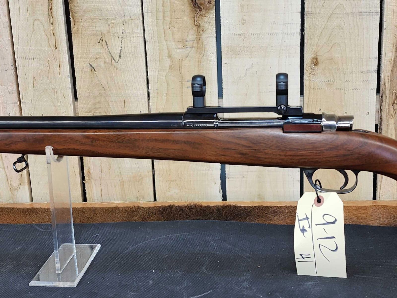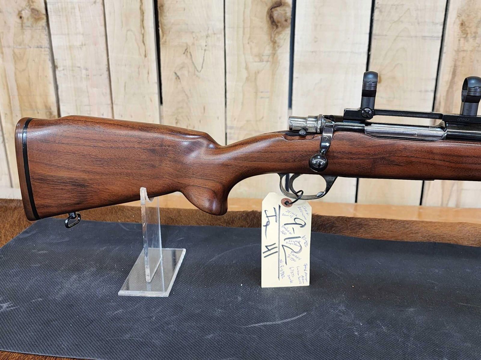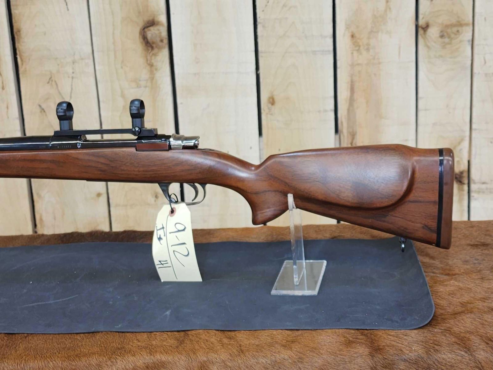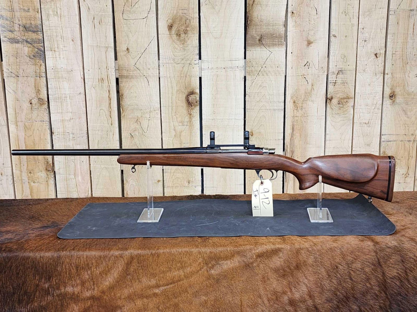 9.12 Spanish Mauser action custom stock 24" Bull barrel Shiny bore good rifling Timney trigger Leupold scope mount nice gun SN R-11902