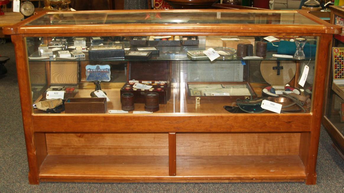 Custom Built Cherry Wood & Glass Showcase - Has 2 drawers in the back & open shelves in front & back, top of showcase is removable for easy access - 72" x 24" x 40" Tall