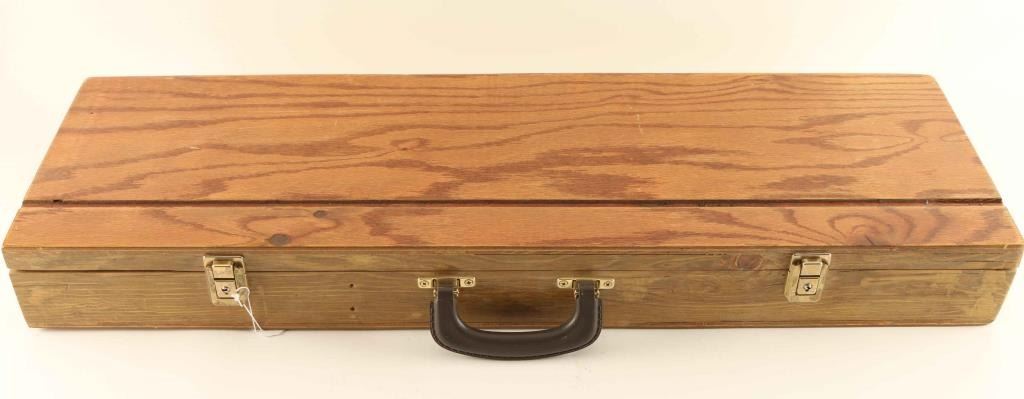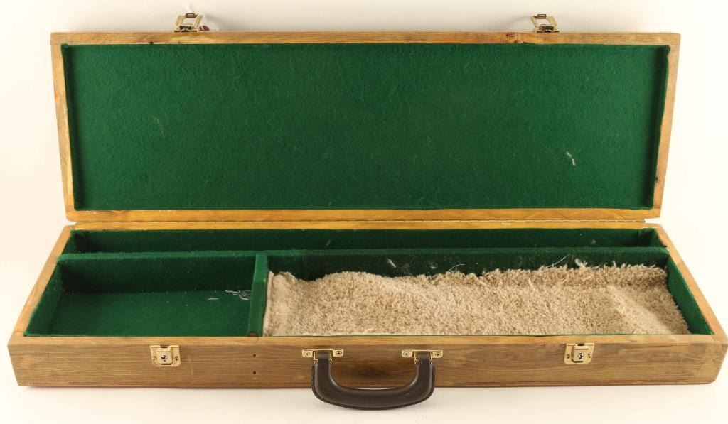 Locking transportation case with carry handle and green felt lined compartmentalized interior. Will fit up to 30.5" barrels. Includes keys. Exterior measurements 32" x 10" x 3.5".