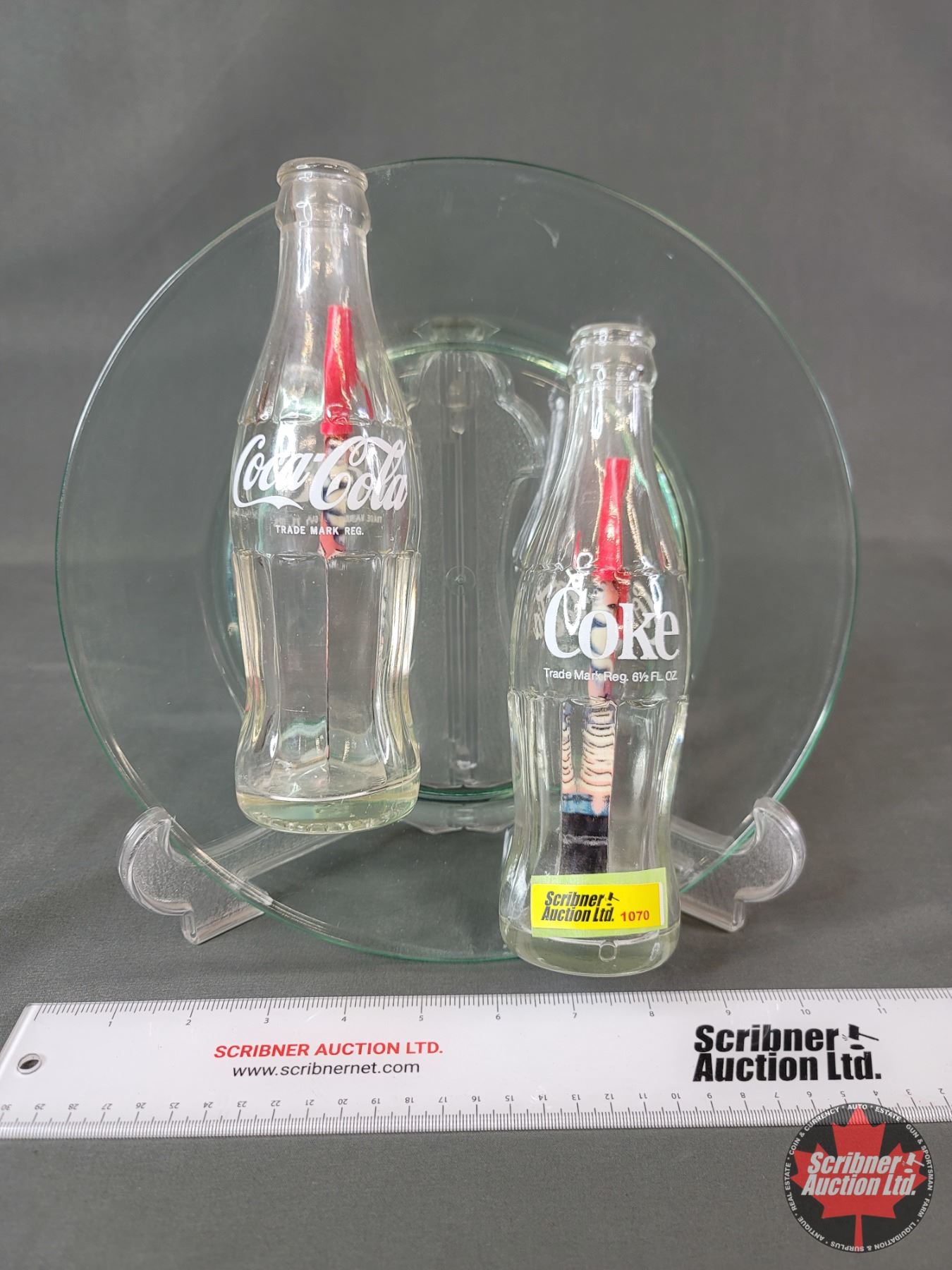 Custom Coca-Cola Collector Bottle Display (Pens in Bottles) (Plate Measures 10-5/8" Dia) (SEE PICS!)