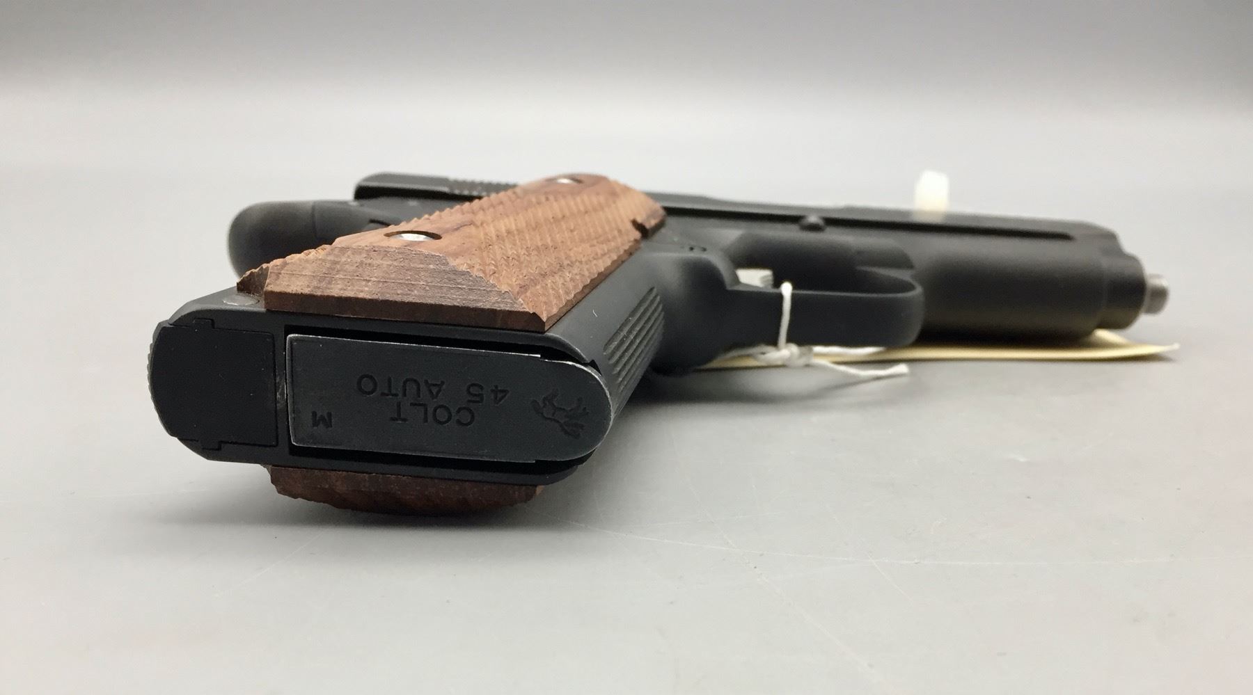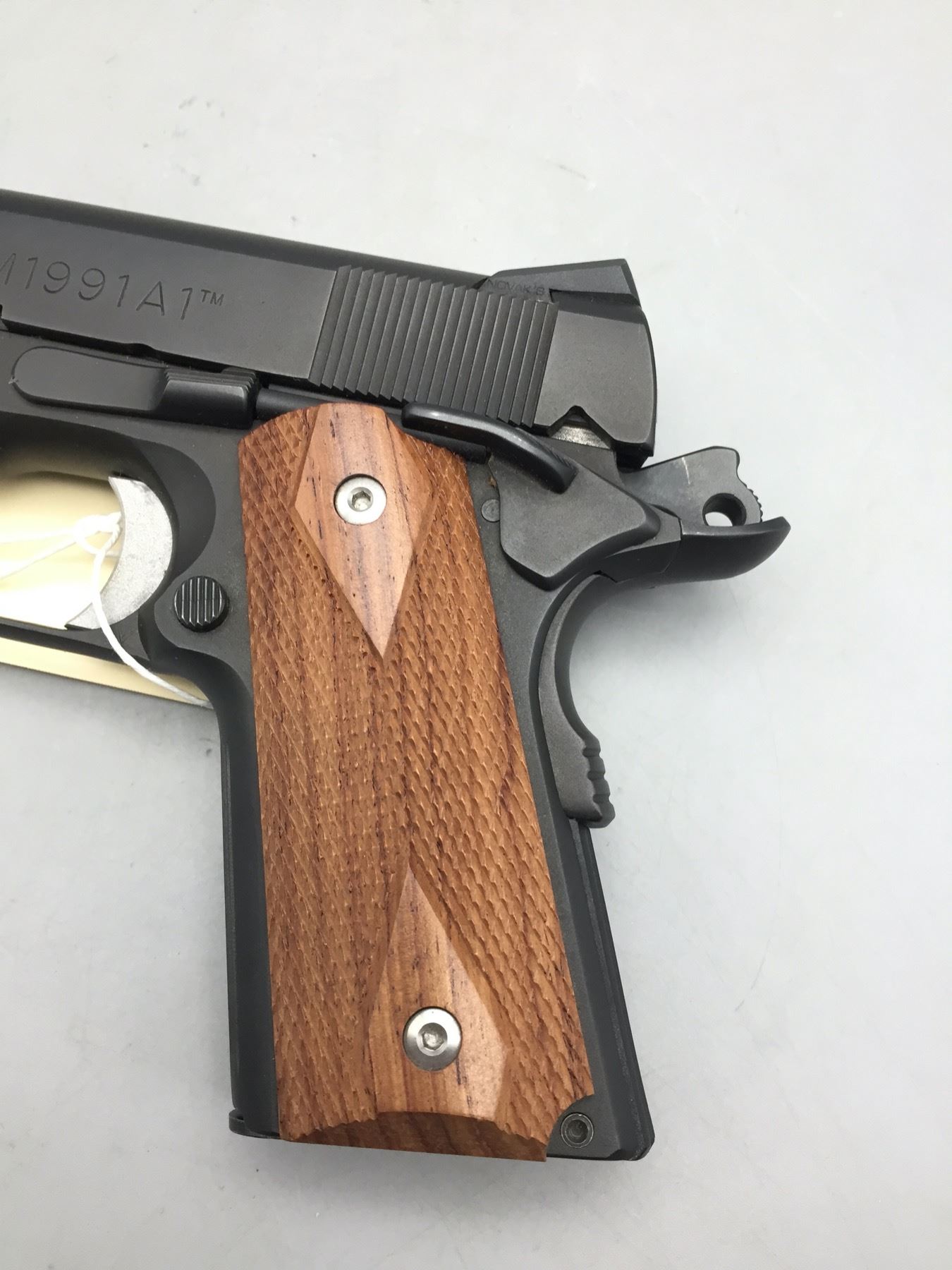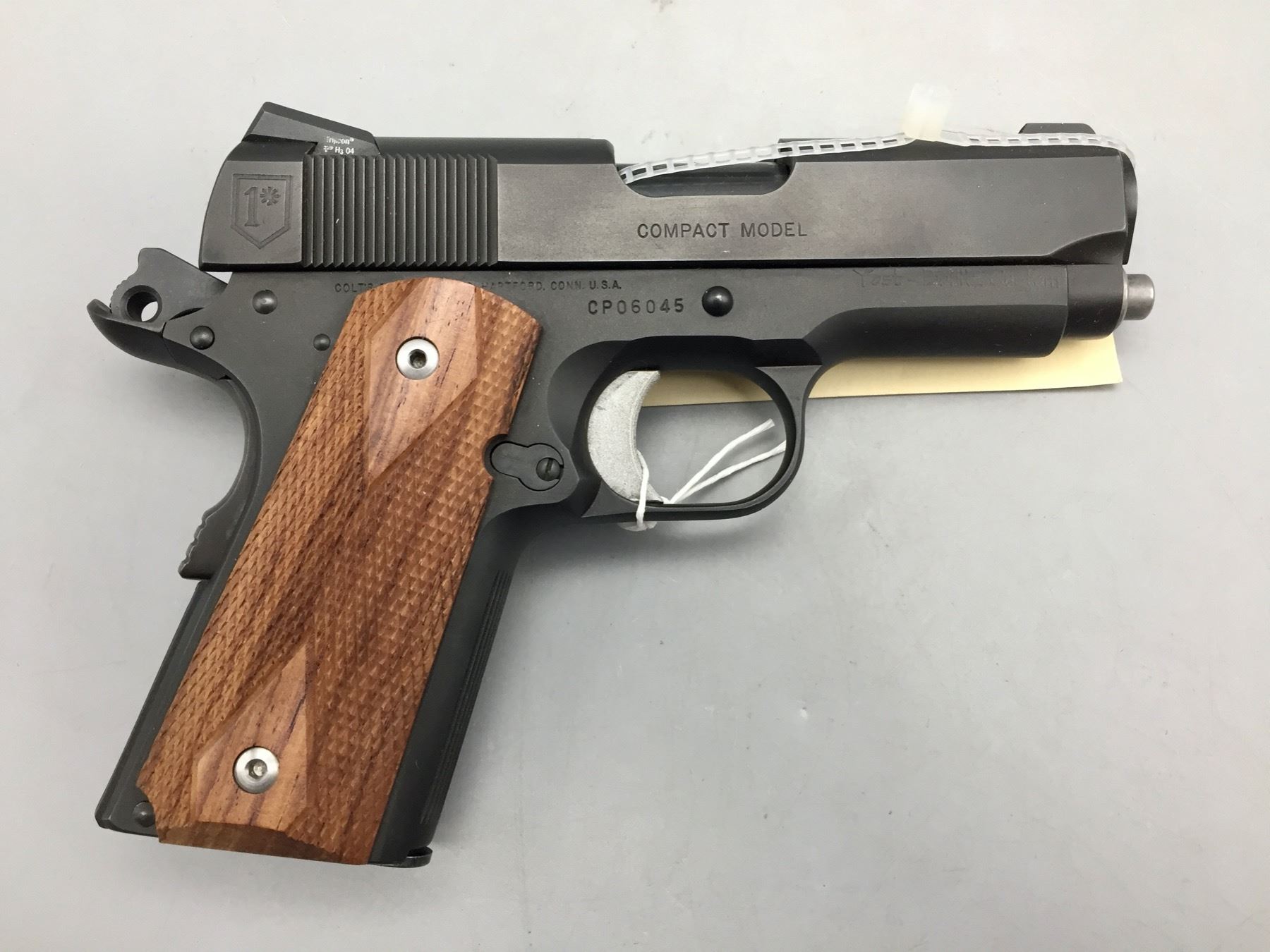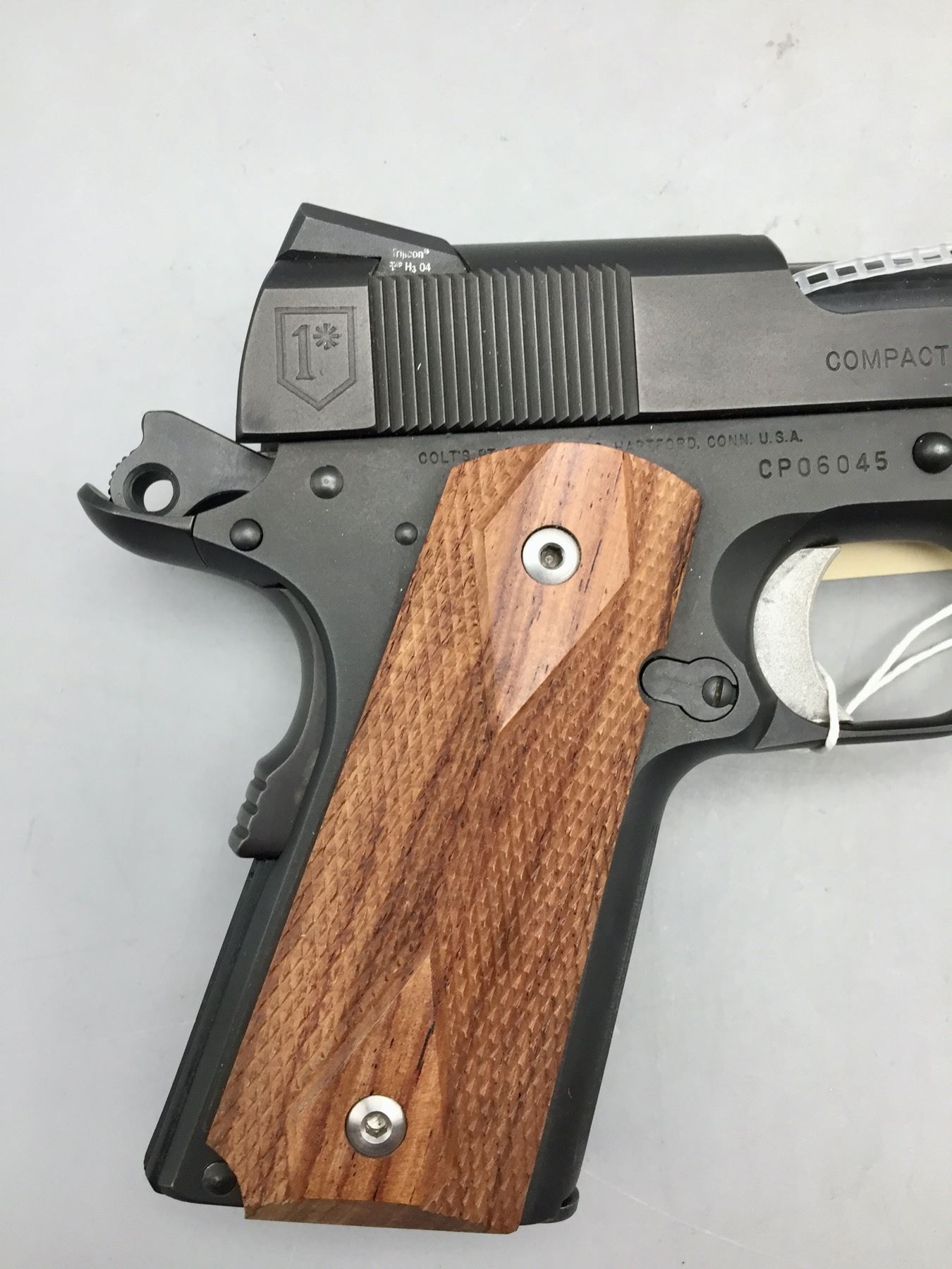Description: Presented for sale in this lot is a Yost-Bonitz custom Colt Model 1991A1 in a .45 caliber with wood grips. Pistol comes with a padded case and is in like new condition. Maker: Colt. Approx. Age: 1993 - 1999. Serial No. CP06045. Size: Barrel measures 3-1/2 inches long. Condition: Good to excellent. Please look closely at the pictures - they are an important part of our description. Shipping: There will be a $15 handling, packaging fee for shipping this lot. The actual cost of postage will be added on top of that. *****This firearm requires an FFL Transfer*****